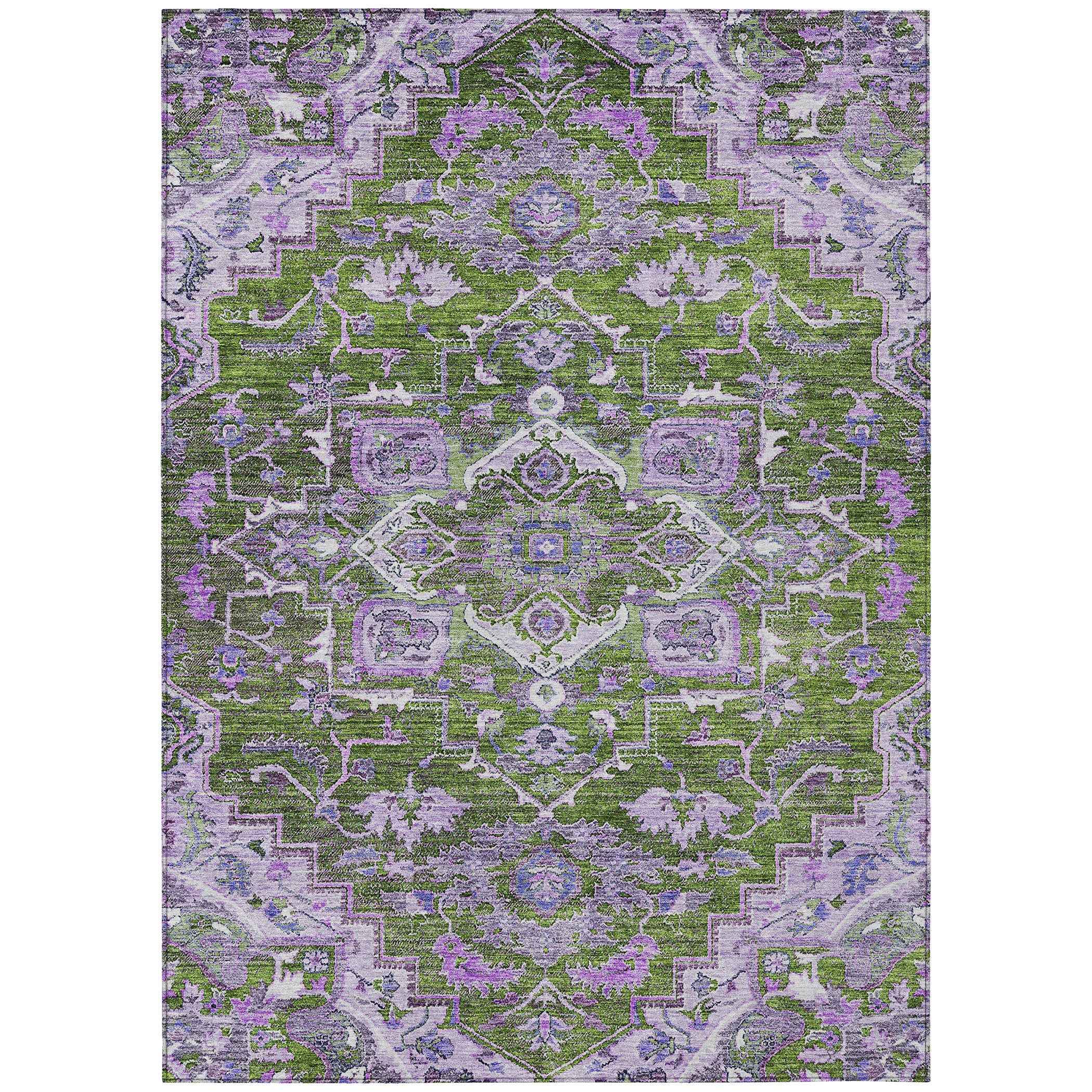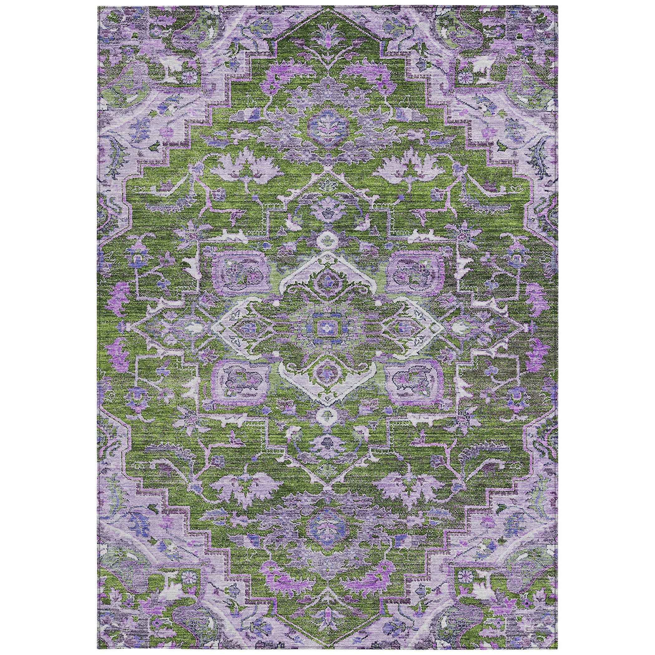 3' X 5' Olive Green And Purple Oriental Washable Indoor Outdoor Area Rug
