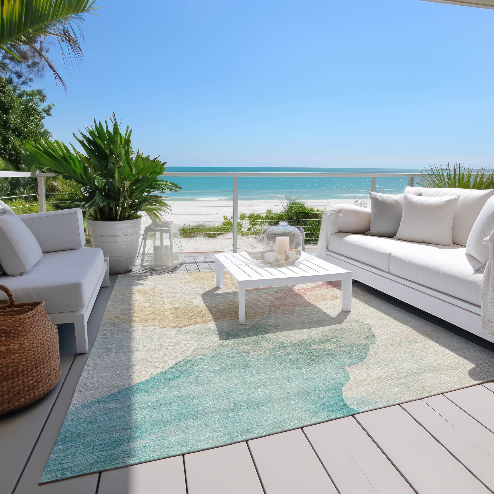 3' X 5' Pearl Ivory Beige And Teal Blue Abstract Washable Indoor Outdoor Area Rug Skip to content