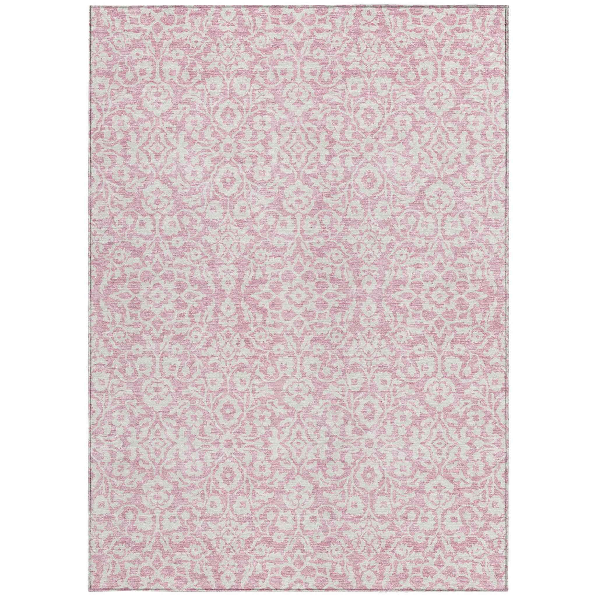 3' X 5' Pink And Ivory Damask Washable Indoor Outdoor Area Rug - Skip to content