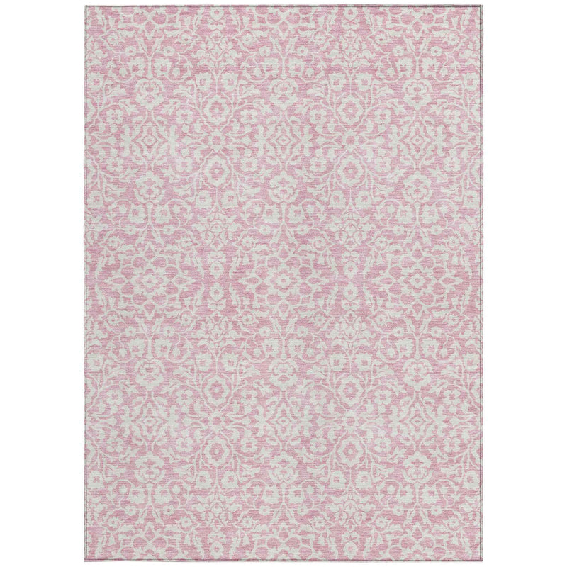3' X 5' Pink And Ivory Damask Washable Indoor Outdoor Area Rug