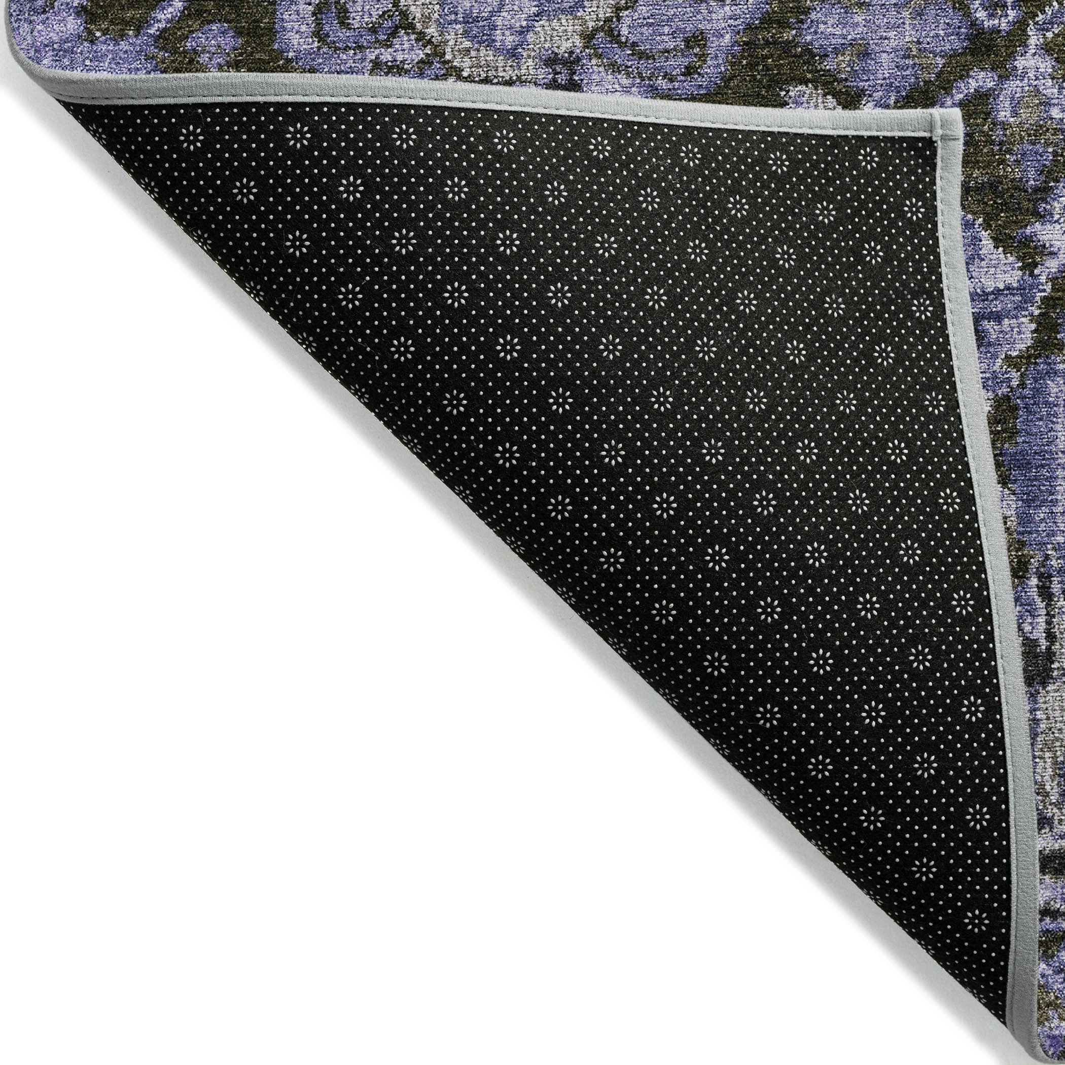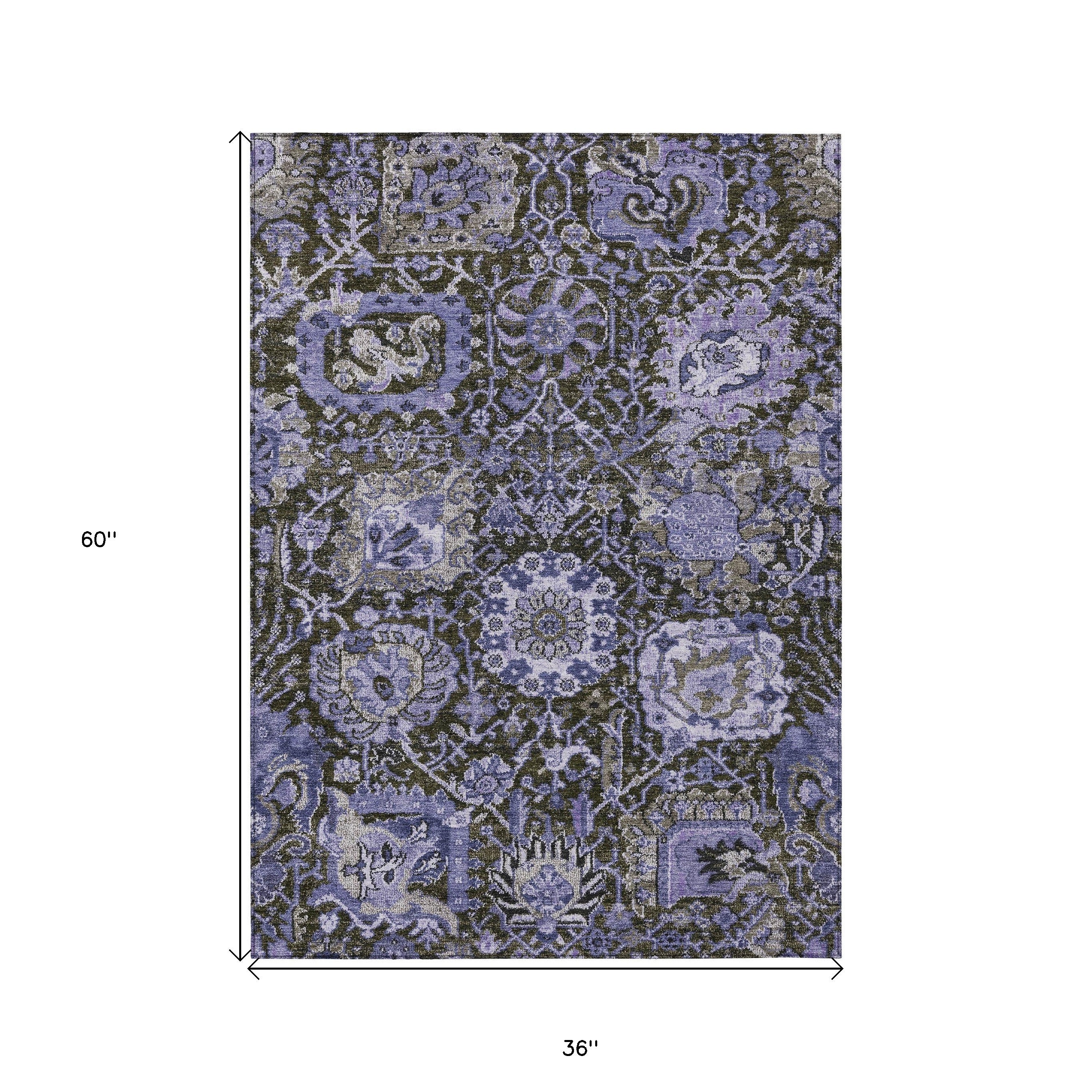 3' X 5' Purple And Black Damask Washable Indoor Outdoor Area Rug