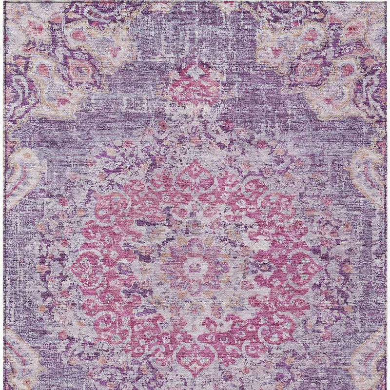 3' X 5' Purple Floral Medallion Washable Indoor Outdoor Area Rug