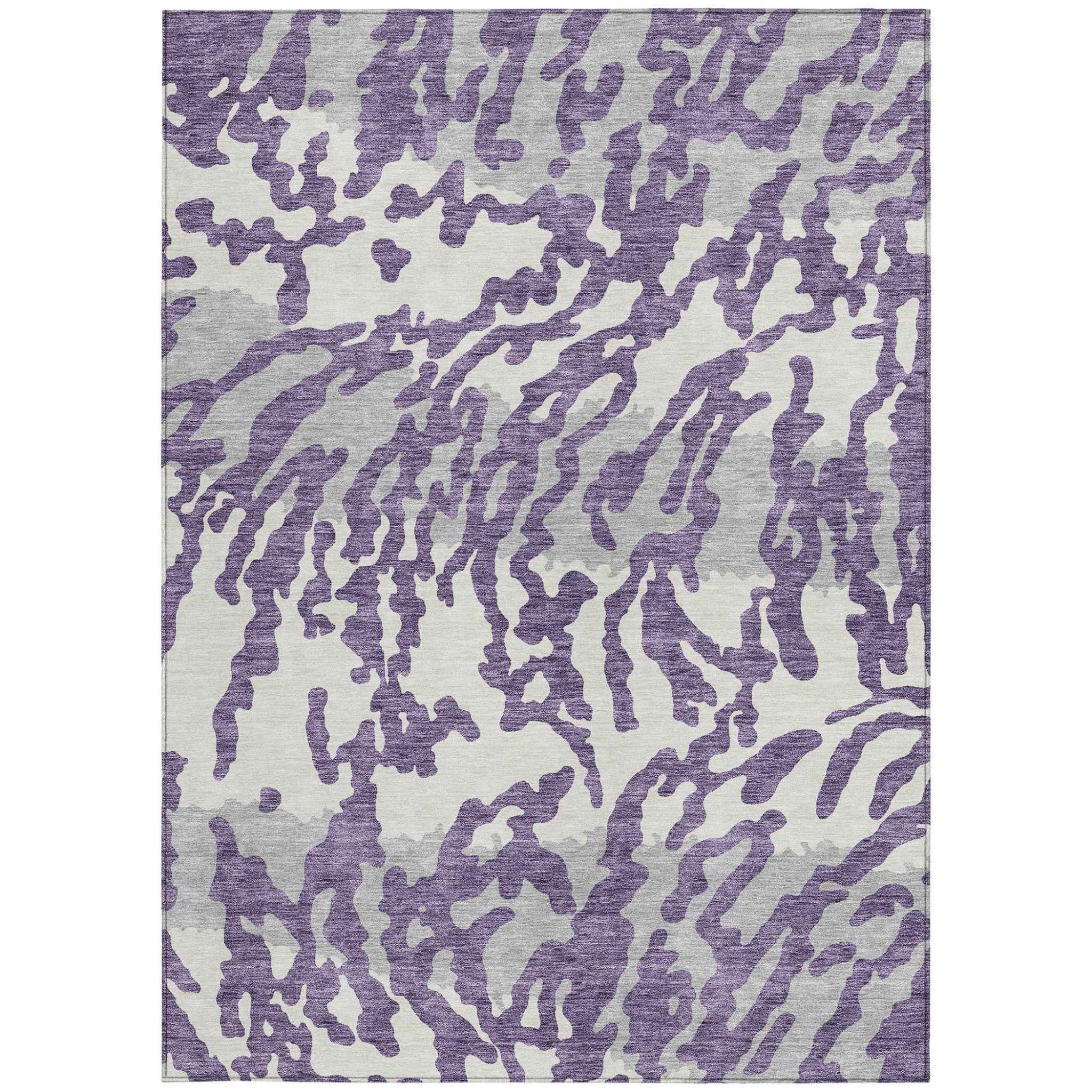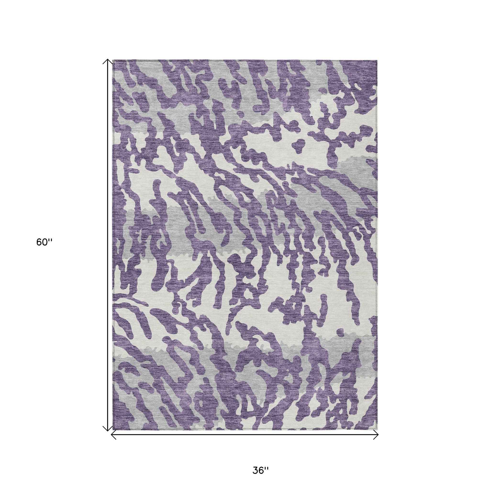 3' X 5' Purple Gray And Ivory Animal Print Washable Indoor Outdoor Area Rug