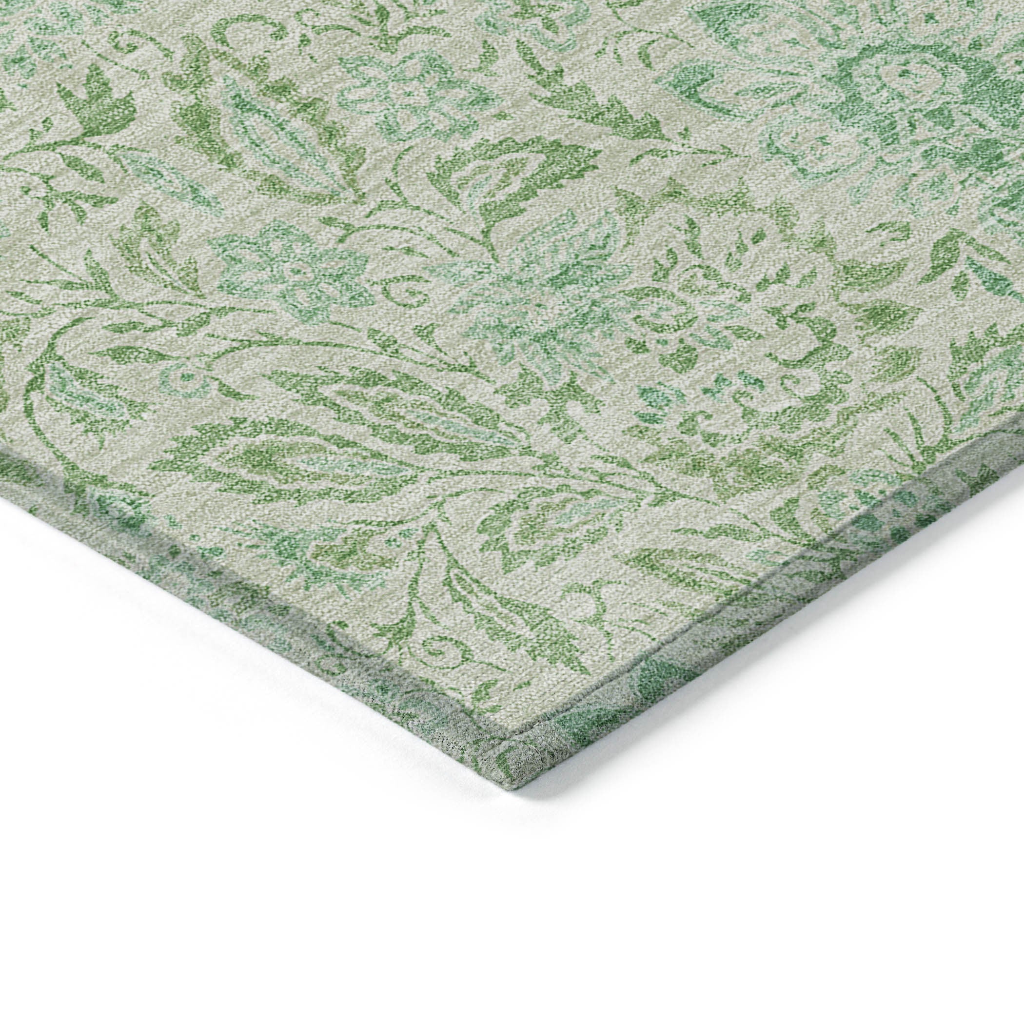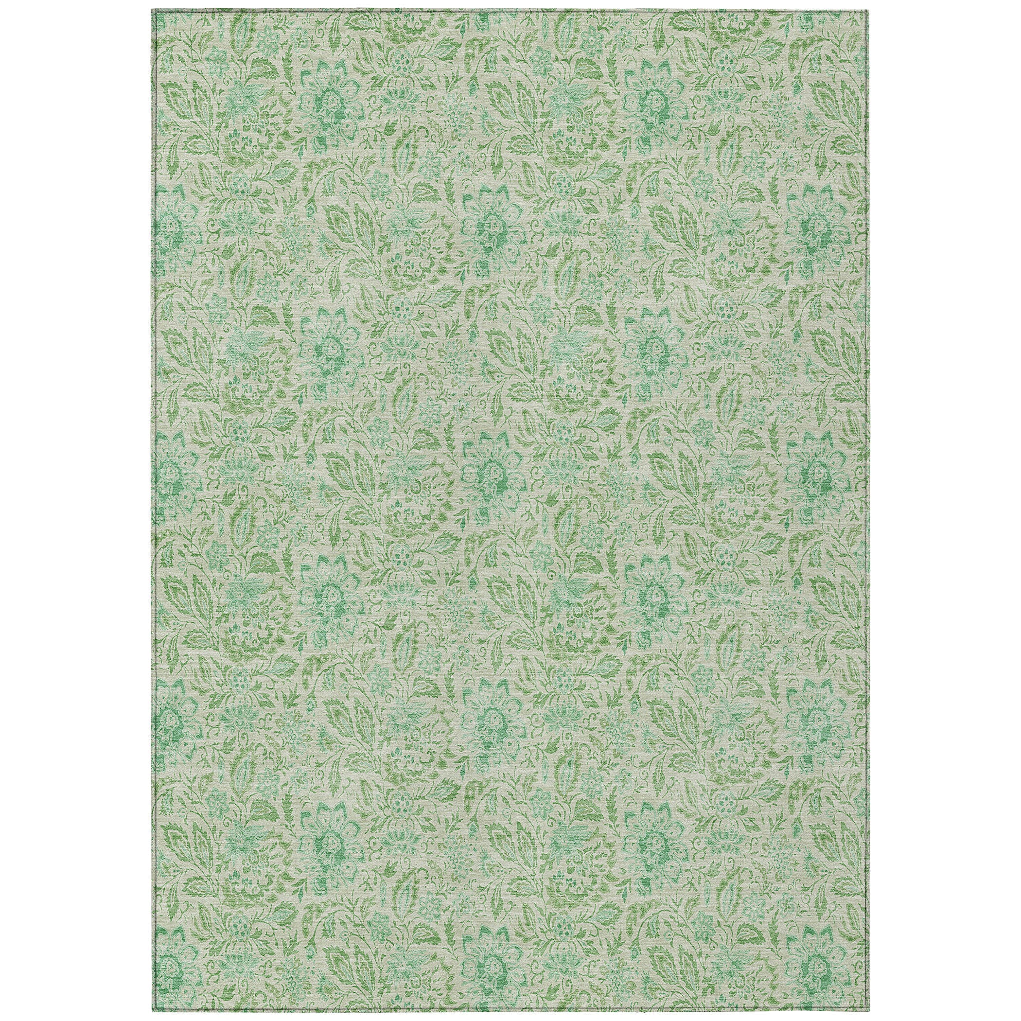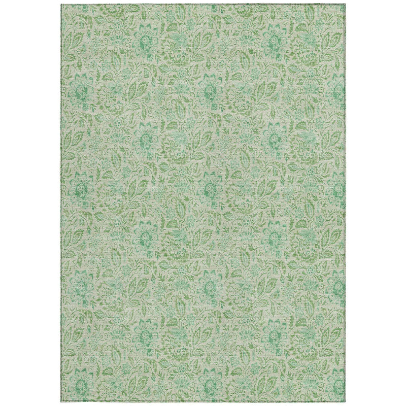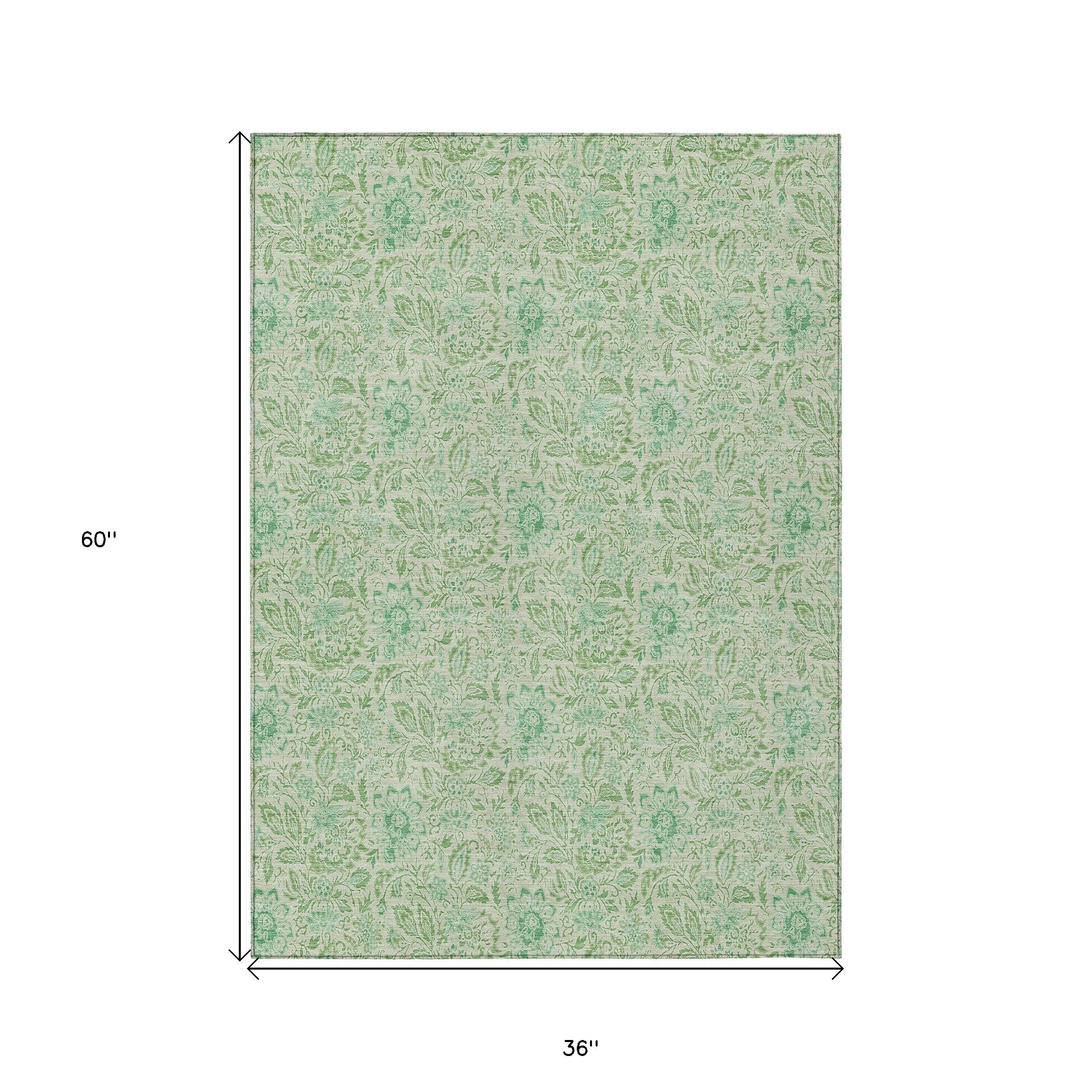 3' X 5' Sage And Artichoke Green Floral Washable Indoor Outdoor Area Rug
