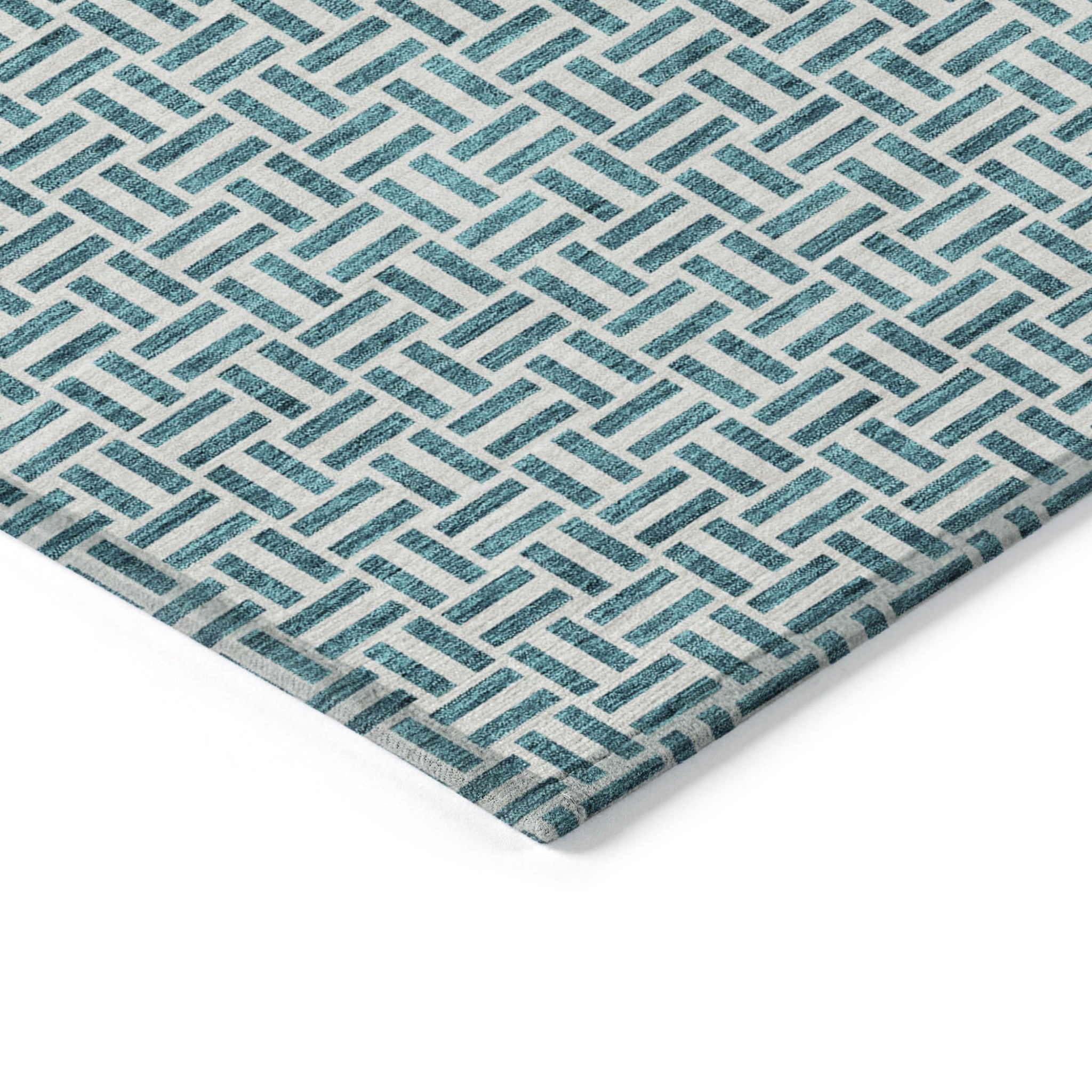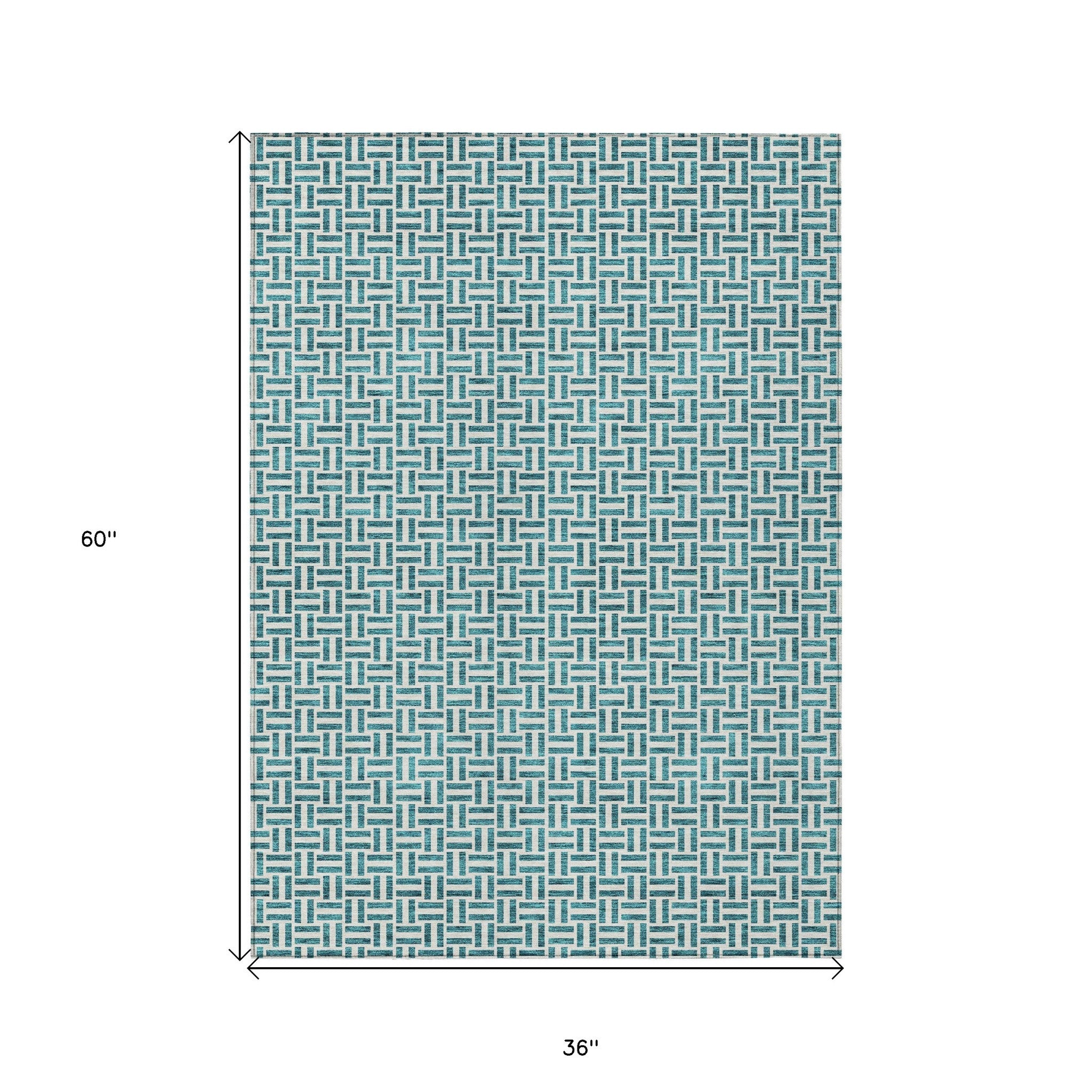 3' X 5' Teal Blue And Silver Geometric Washable Indoor Outdoor Area Rug