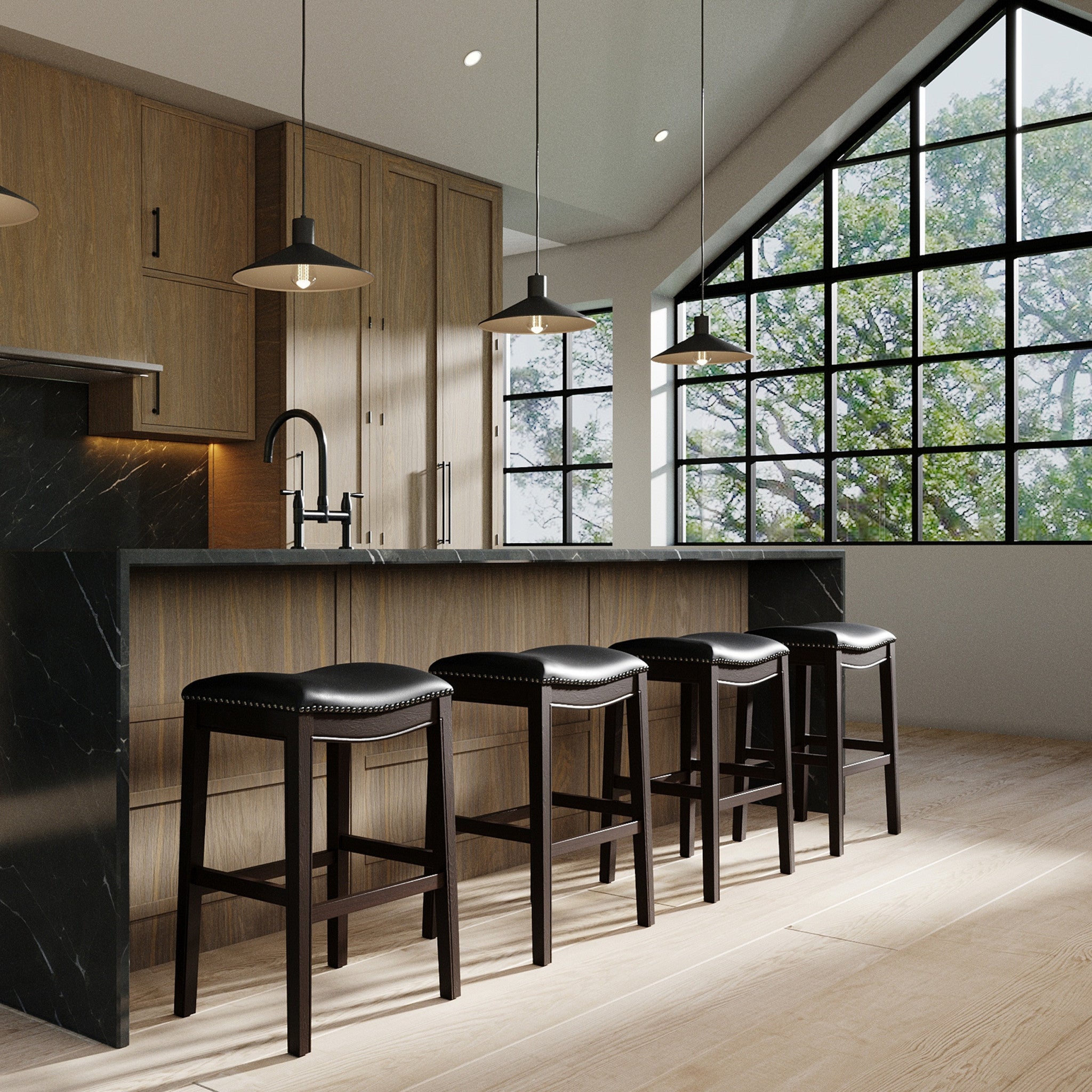 31" Black and Espresso Solid Wood Backless Bar Height Bar Chair - Skip to content