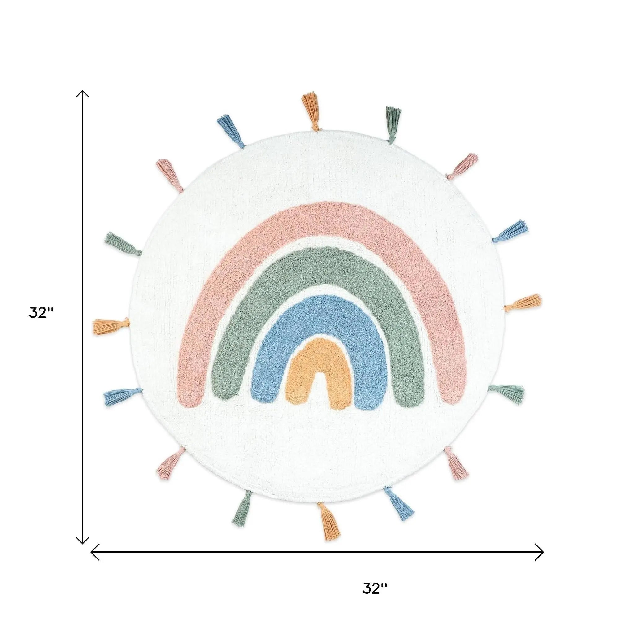 32" White Blue And Pink Cotton Rainbows Round Youthful Bath Rug - Skip to content