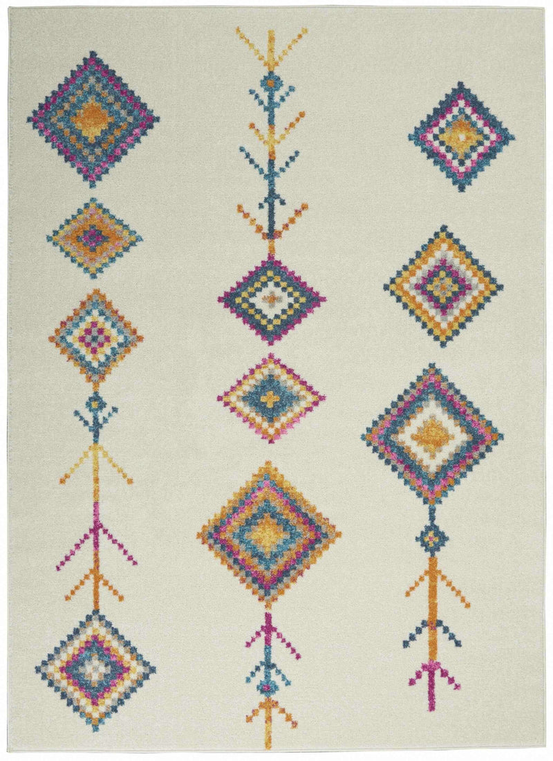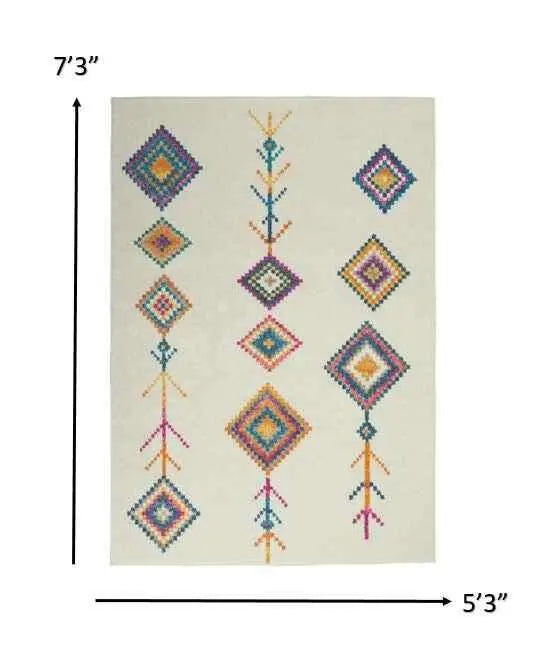 5' X 7' Ivory Geometric Berber Area Rug