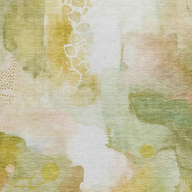 5' X 8' Fern Green Gold And Ivory Abstract Washable Indoor Outdoor Area Rug