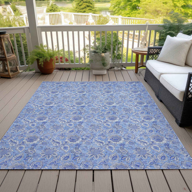 5' X 8' Navy Blue And Denim Blue Floral Washable Indoor Outdoor Area Rug Skip to content