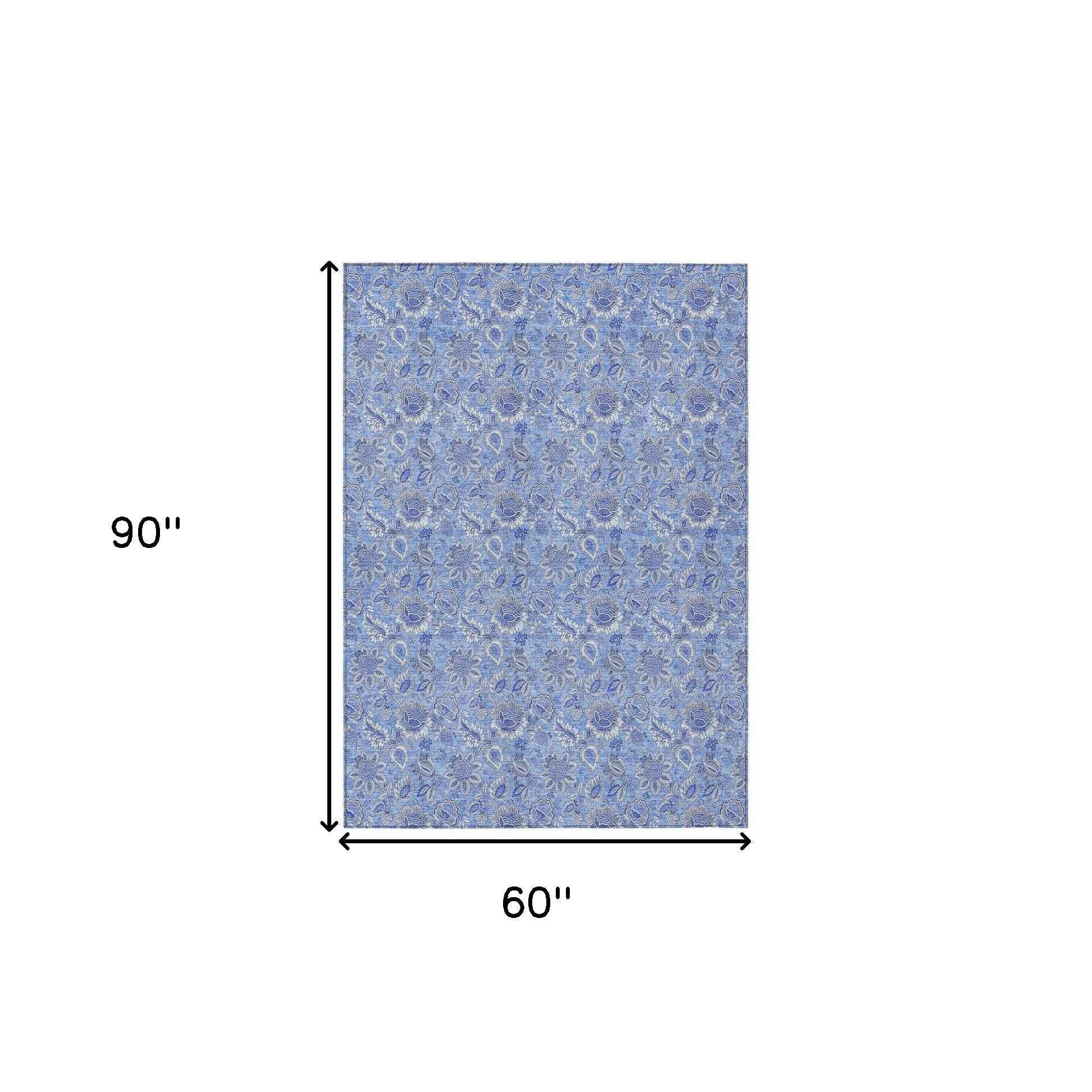 5' X 8' Navy Blue And Denim Blue Floral Washable Indoor Outdoor Area Rug