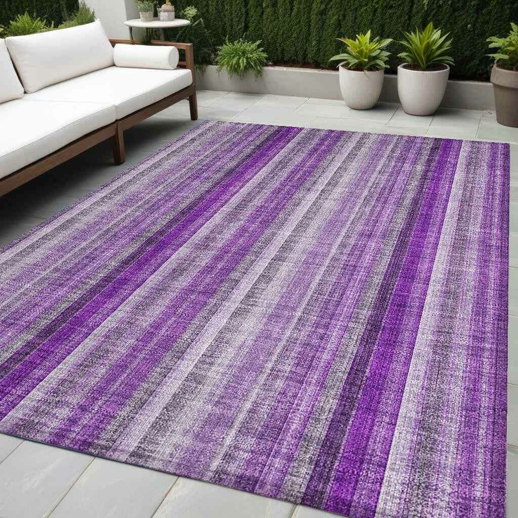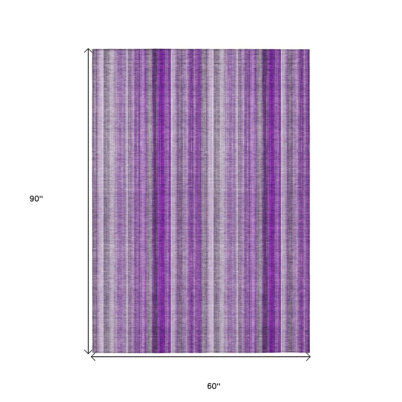 5' X 8' Purple Striped Washable Non Skid Indoor Outdoor Area Rug
