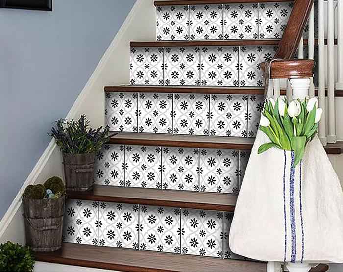 7" X 7" Black and White Lil Daisy Peel and Stick Removable Tiles - Skip to content
