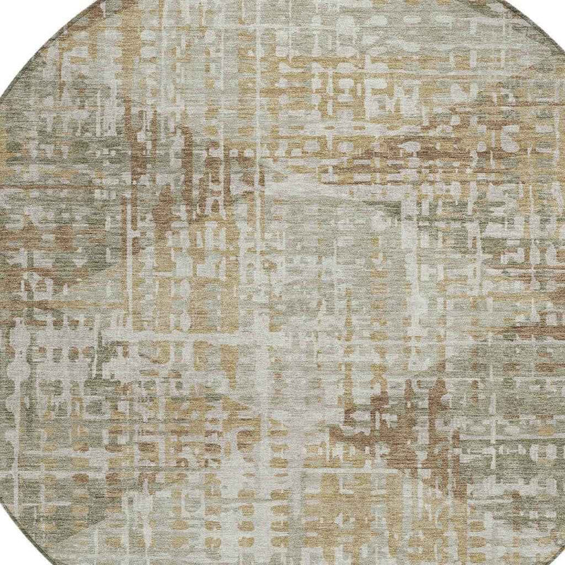 8' Artichoke Green And Brown Round Geometric Washable Indoor Outdoor Area Rug