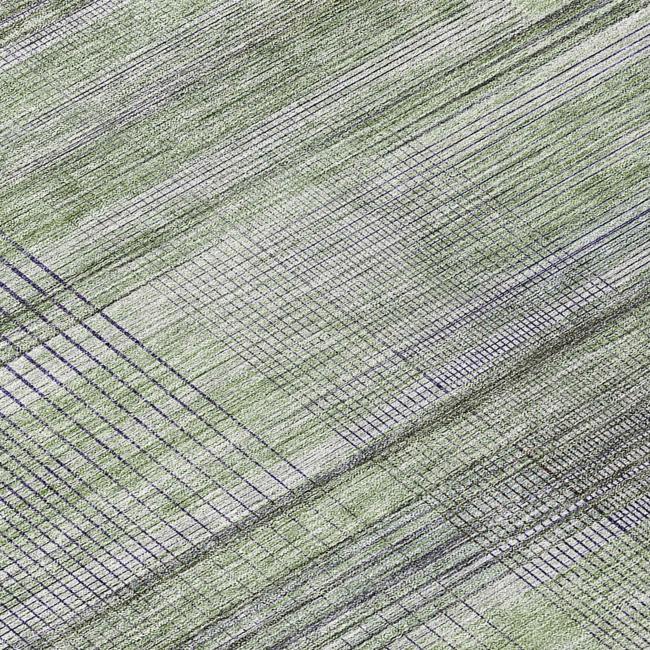 8' Artichoke Green Purple And Fern Green Round Striped Washable Indoor Outdoor Area Rug