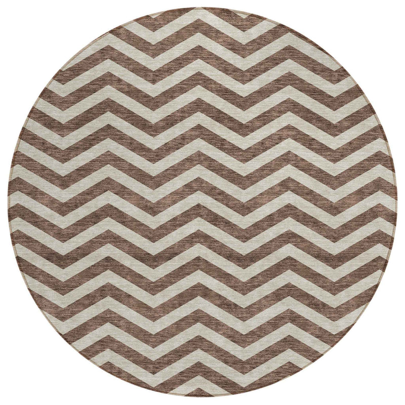 8' Brown And Beige Round Chevron Washable Indoor Outdoor Area Rug
