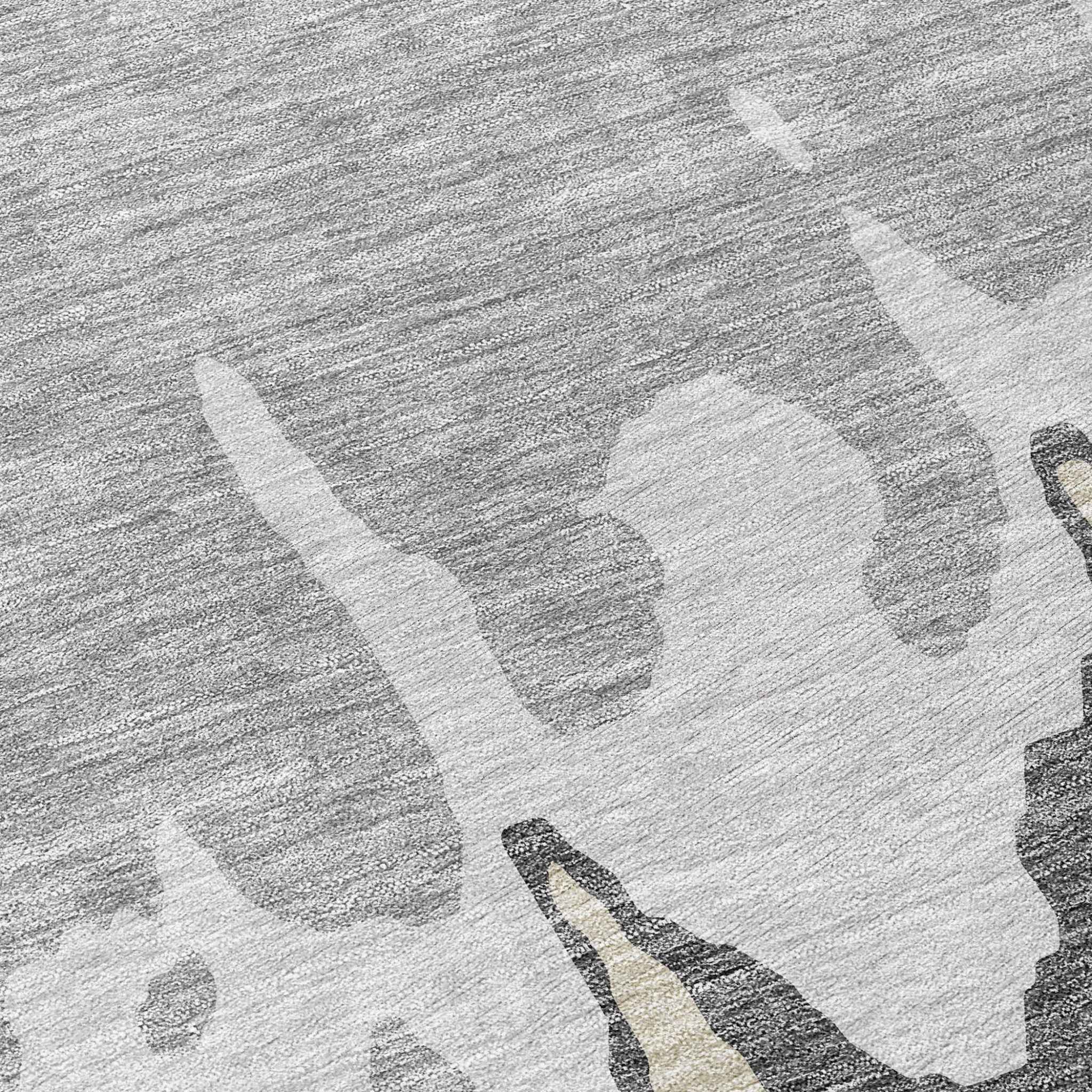8' Gray And Silver Round Abstract Washable Indoor Outdoor Area Rug