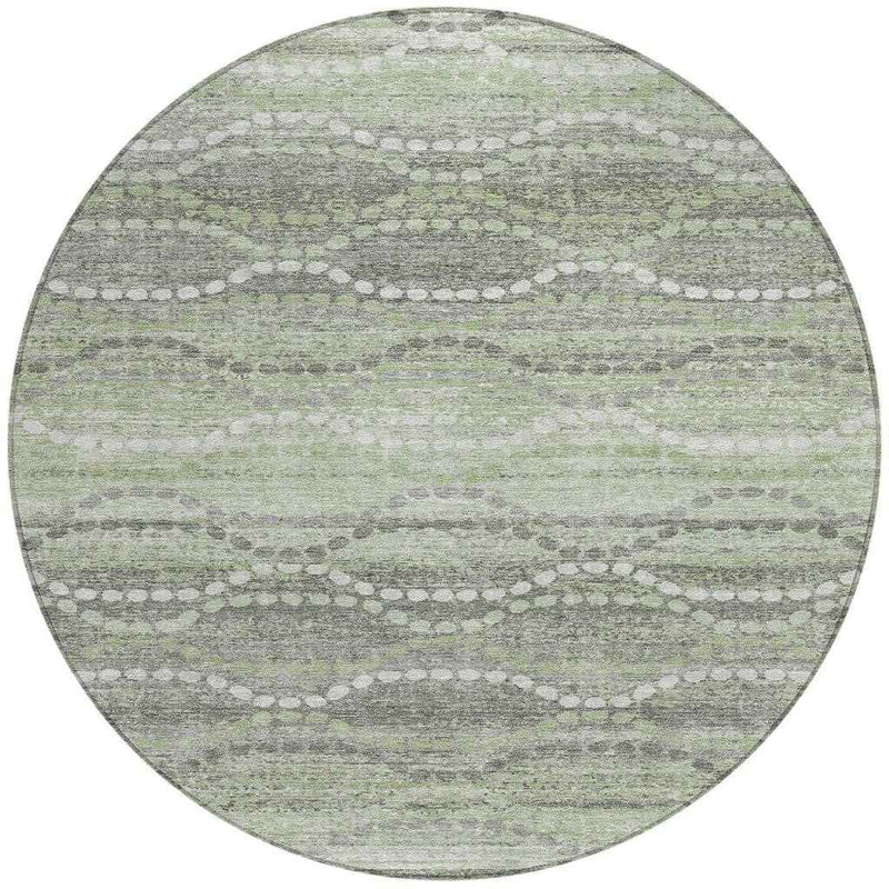8' Green And Ivory Round Ogee Washable Indoor Outdoor Area Rug