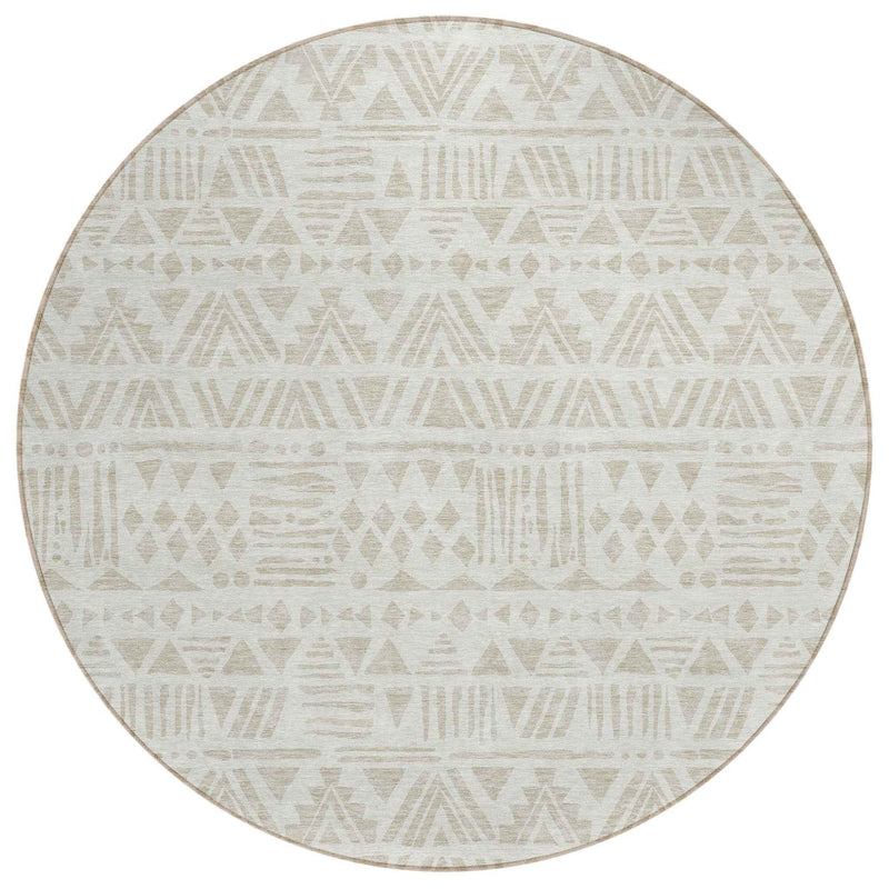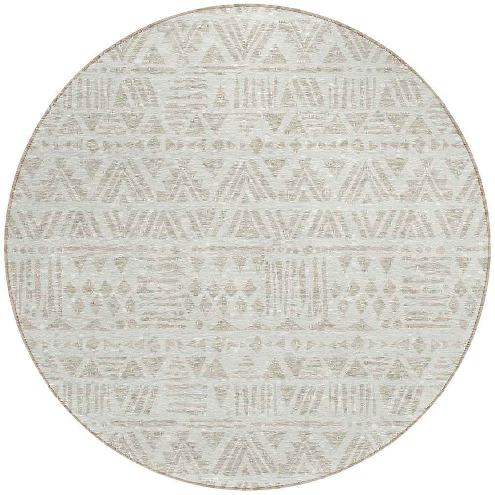 8' Ivory And Beige Round Southwestern Washable Indoor Outdoor Area Rug