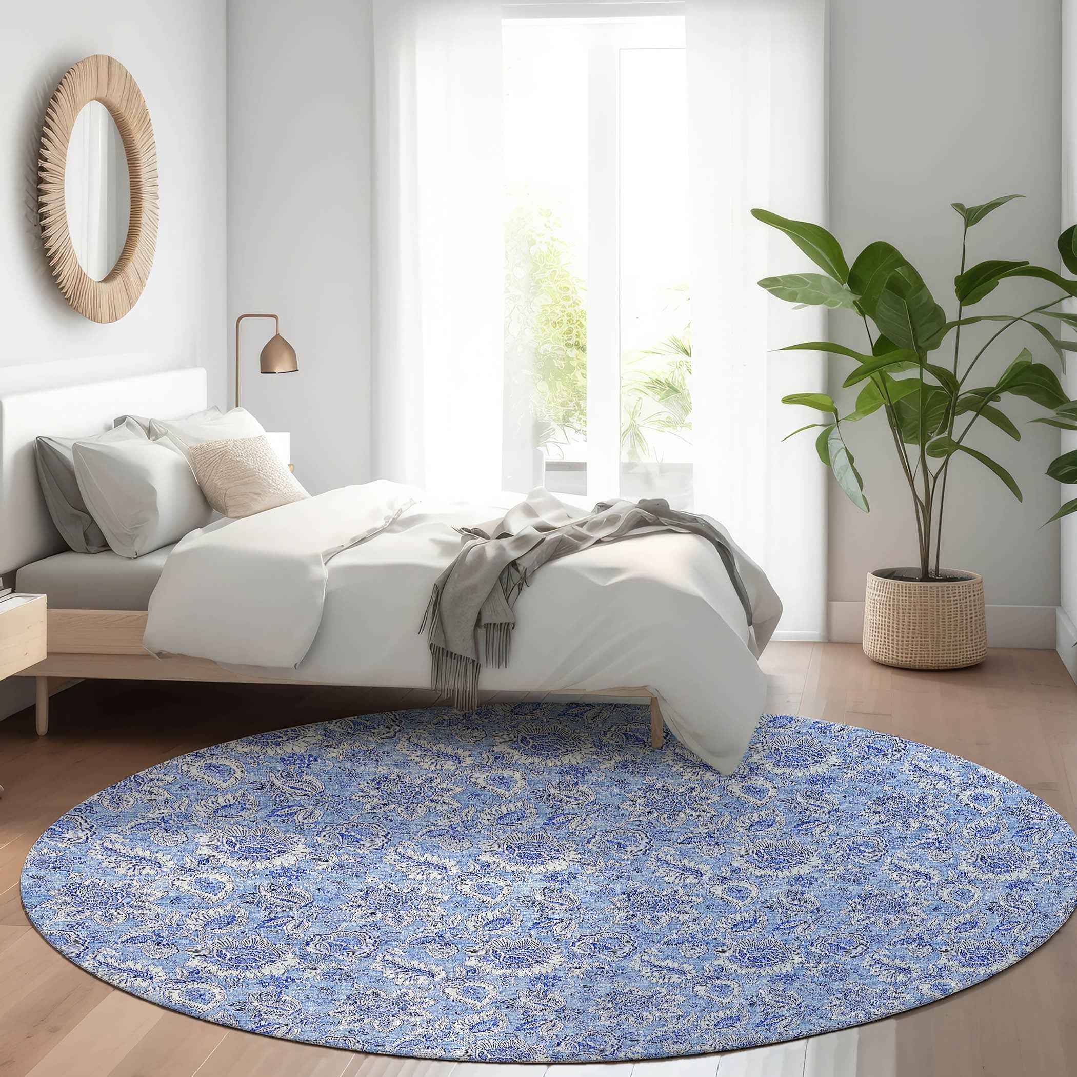 8' Navy Blue And Denim Blue Round Floral Washable Indoor Outdoor Area Rug Skip to content