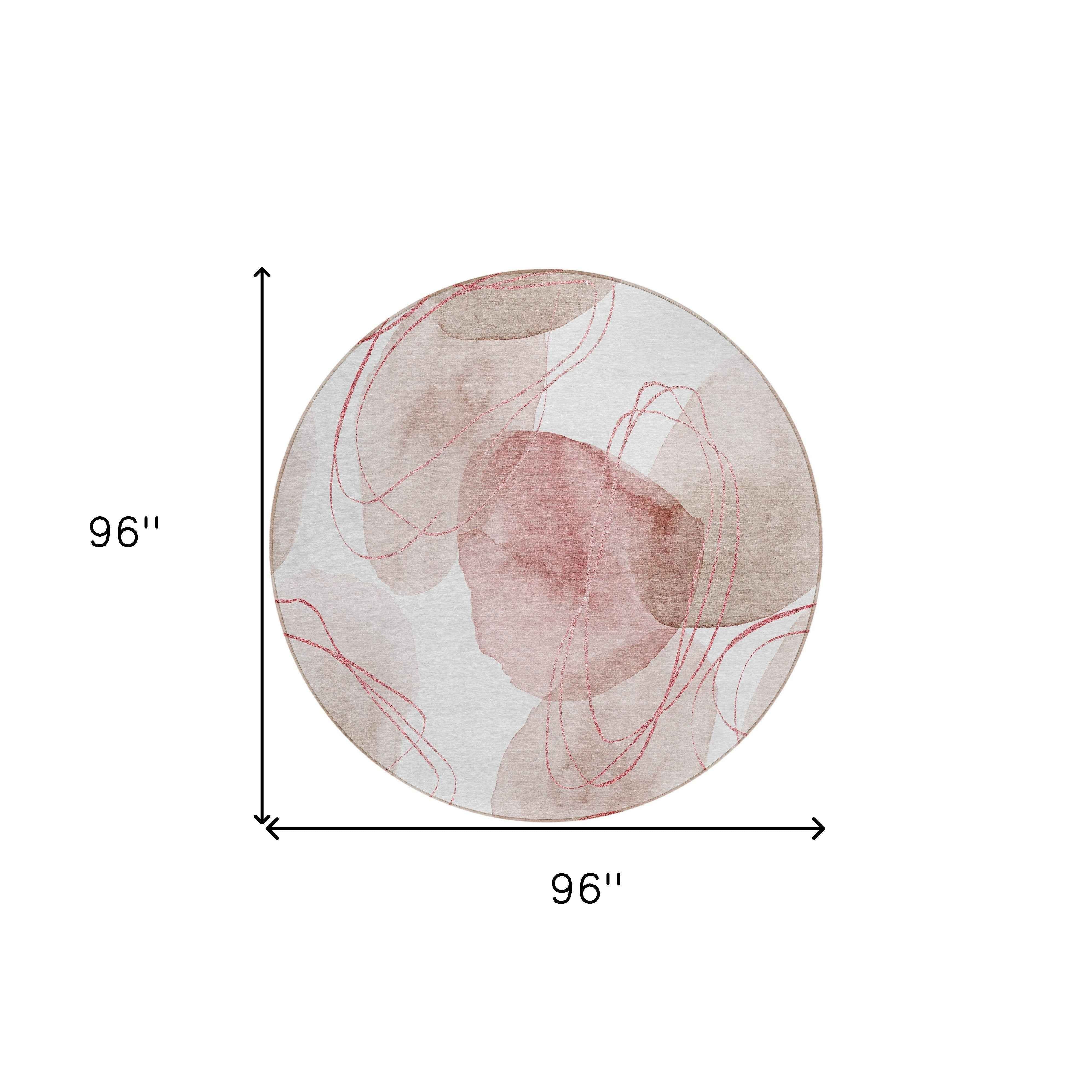 8' Round Merlot and Ivory Round Abstract Washable Non Skid Indoor Outdoor Area Rug