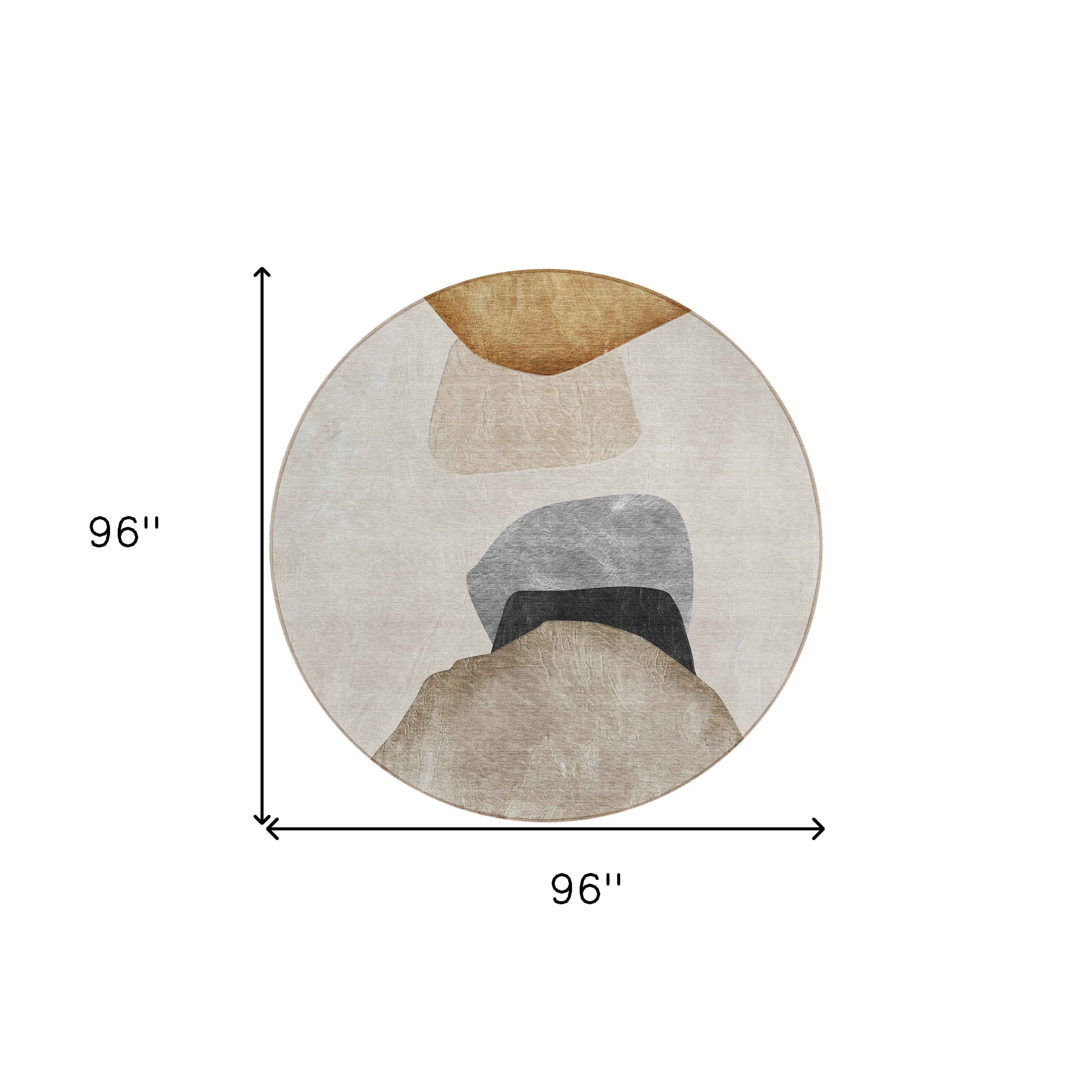 8' Round Tan Brown and Gray Round Abstract Washable Non Skid Indoor Outdoor Area Rug