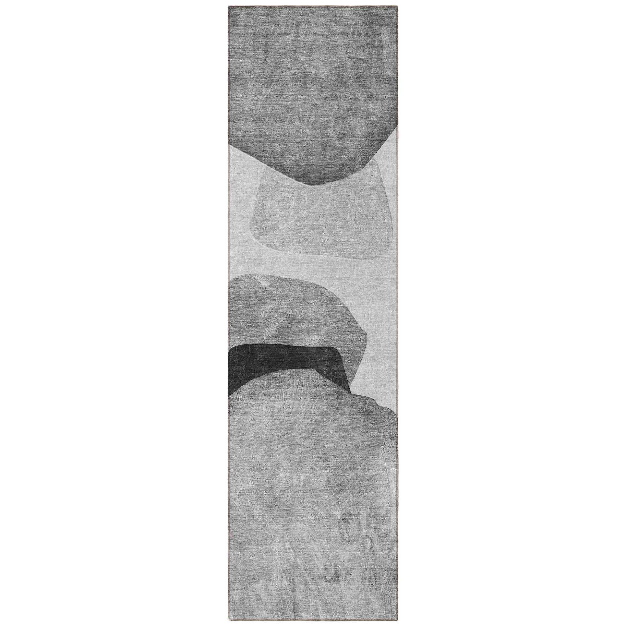 8' Runner Gray and Black Abstract Washable Non Skid Indoor Outdoor Runner Rug