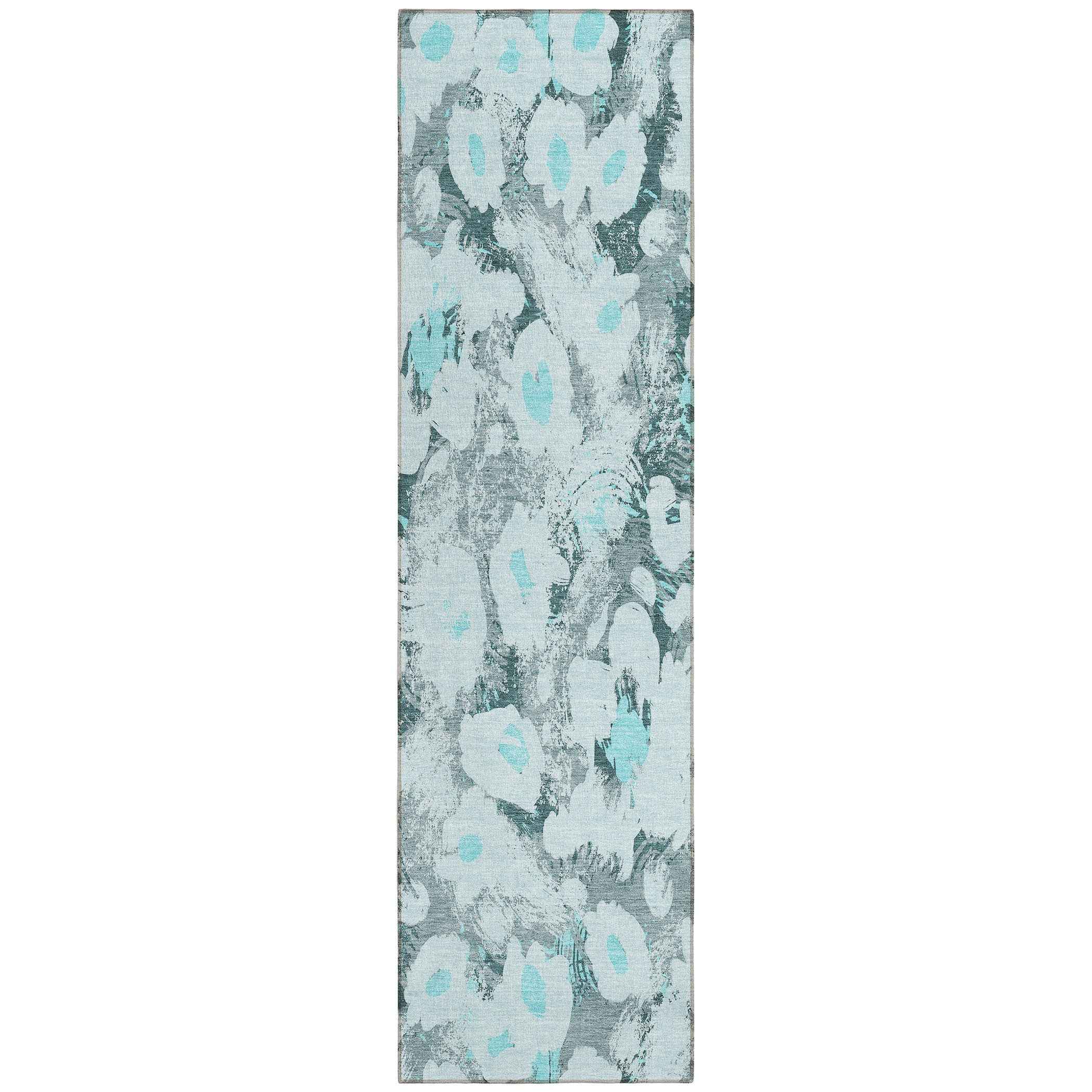 8' Runner Teal Floral Washable Non Skid Indoor Outdoor Runner Rug - Skip to content