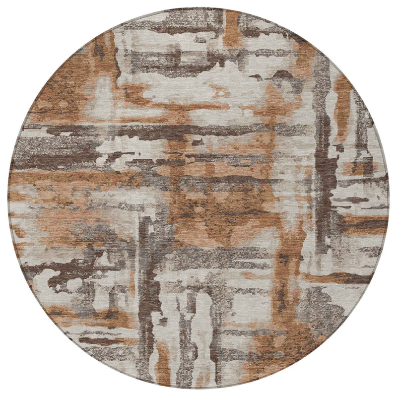 8' Rust And Taupe Round Abstract Washable Indoor Outdoor Area Rug