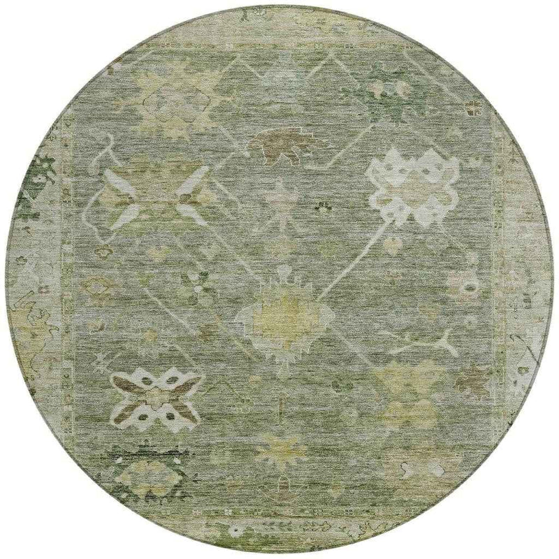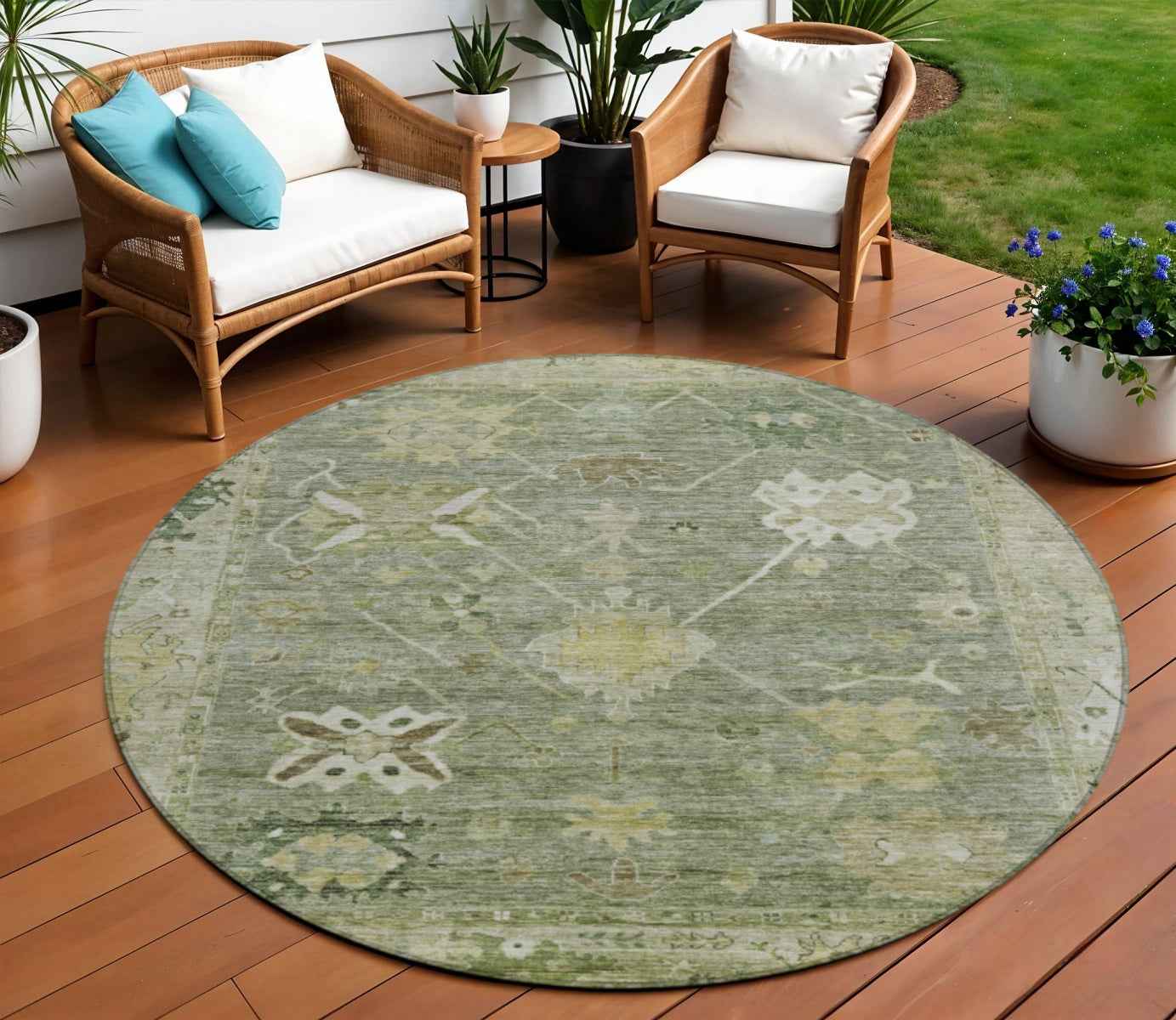8' Sage And Beige Round Tribal Washable Indoor Outdoor Area Rug