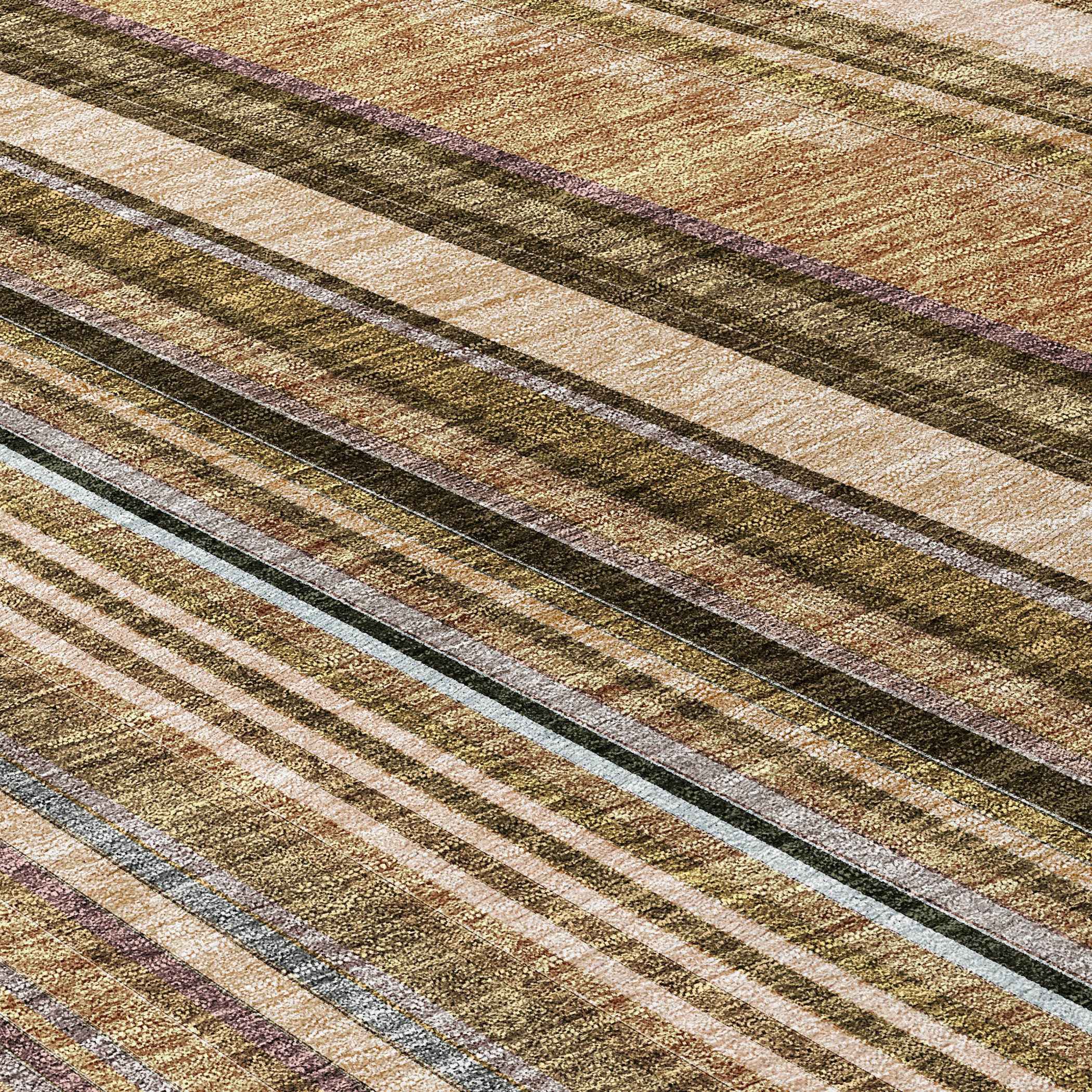 Set an inviting tone in your space with this 8-foot taupe beige and brown round striped washable indoor outdoor area rug. This geometric round shaped rug features a striped pattern in taupe, beige, and brown that combines a good looking print with a unique and updated shape. The mix of shape, color, and design gives this rug refreshing visual interest. Ideal for outdoor spaces or high traffic areas with kids and pets, this rug is made from heavy duty polyester that is stain resistant to help repel water, dirt, and stains. Makes a great way to dress up your patio, porch, or poolside, but also works well as a durable and easy to maintain option in the kitchen, family room, or mudroom. 96-inch h x 96-inch w x 0.19-inch d.