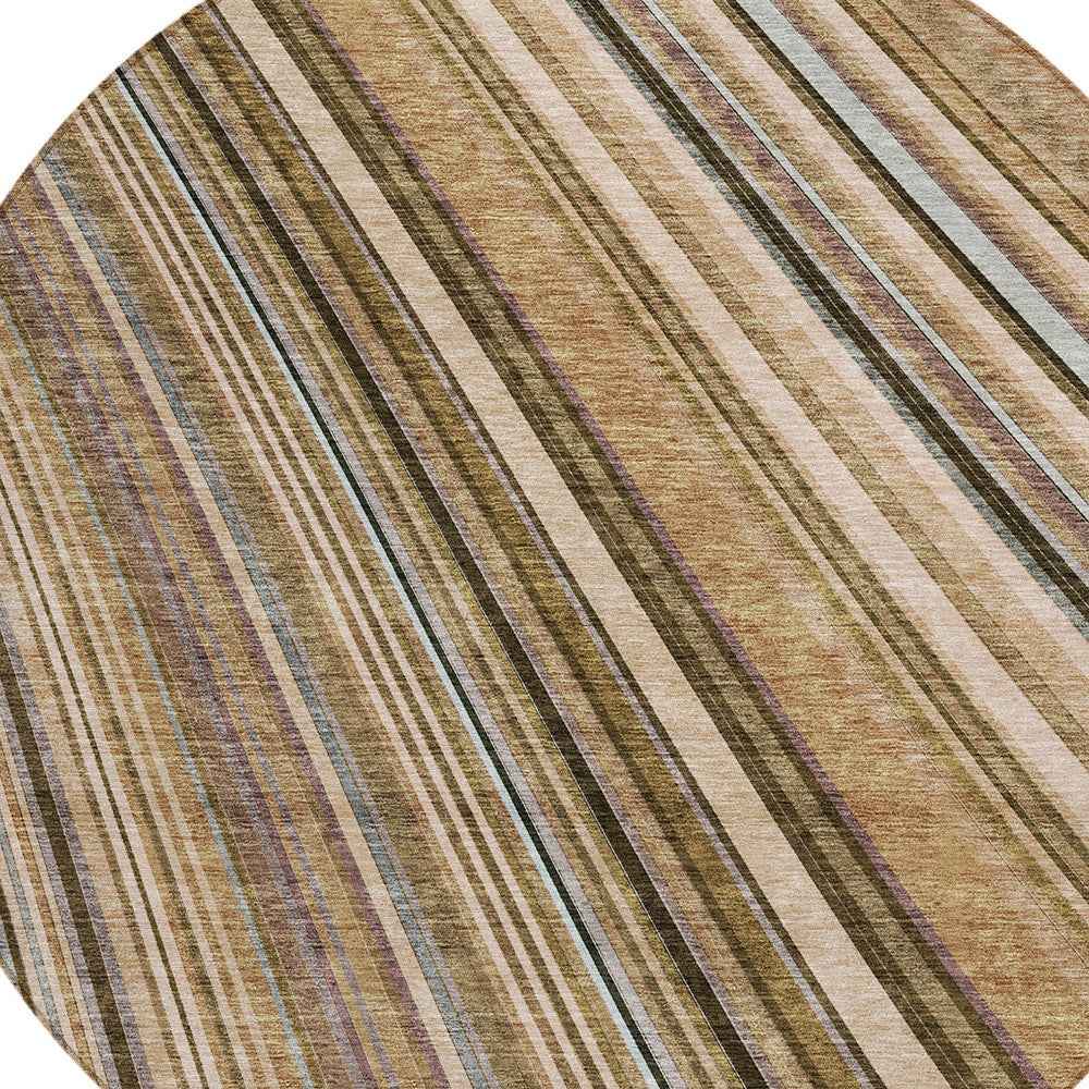 8' Taupe Beige And Brown Round Striped Washable Indoor Outdoor Area Rug