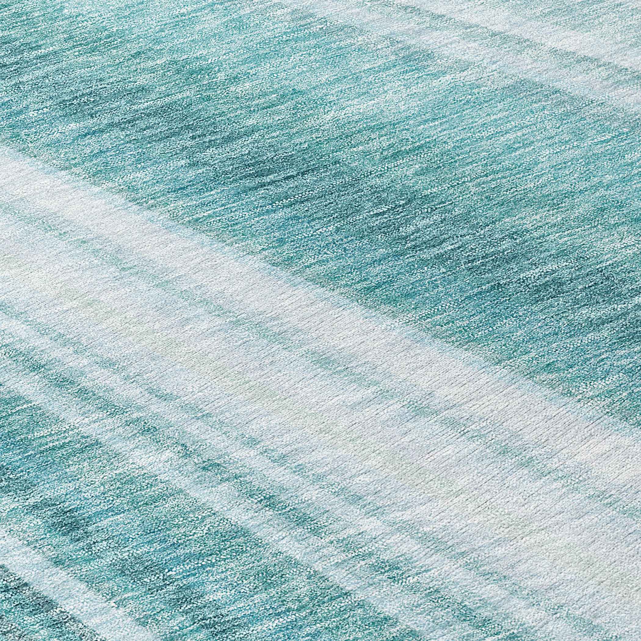 Set an inviting tone in your space with this 8-foot teal blue turquoise and aqua round striped washable indoor outdoor area rug. This geometric round shaped rug features a striped pattern in teal blue, turquoise, and aqua that combines a good looking print with a unique and updated shape. The mix of shape, color, and design gives this rug refreshing visual interest. Ideal for outdoor spaces or high traffic areas with kids and pets, this rug is made from heavy duty polyester that is stain resistant to help repel water, dirt, and stains. Makes a great way to dress up your patio, porch, or poolside, but also works well as a durable and easy to maintain option in the kitchen, family room, or mudroom. 96-inch h x 96-inch w x 0.19-inch d.