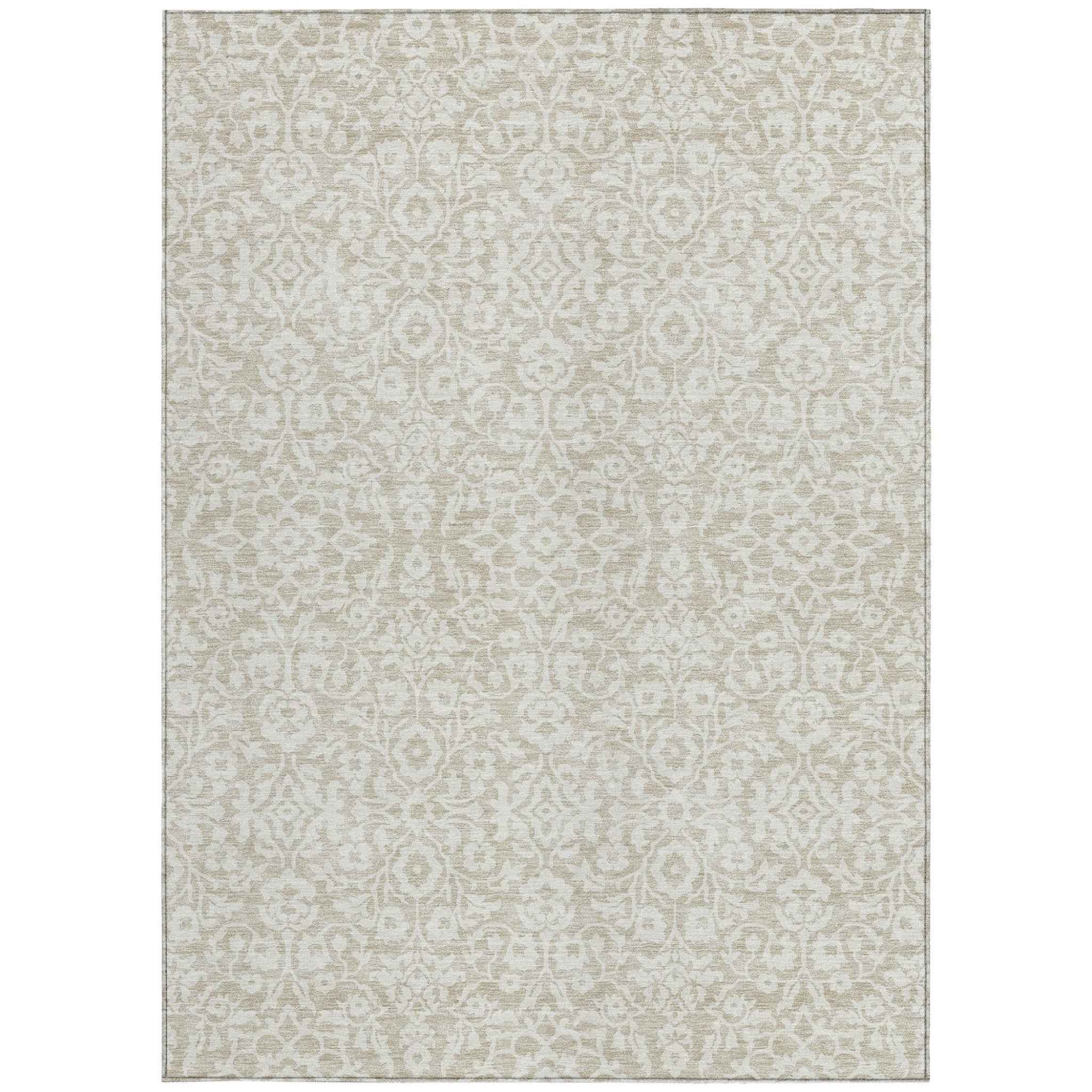 8' X 10' Beige And Ivory Damask Washable Indoor Outdoor Area Rug