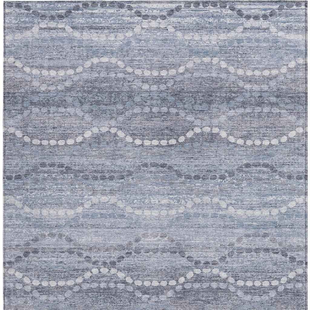 8' X 10' Blue And Ivory Ogee Washable Indoor Outdoor Area Rug