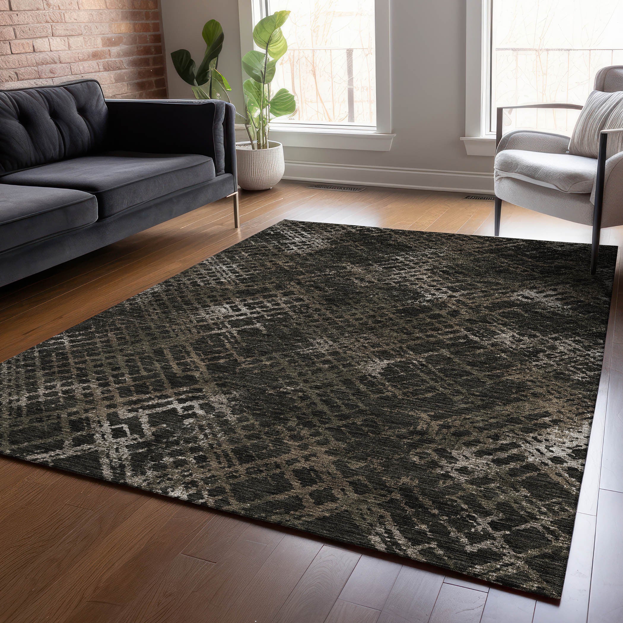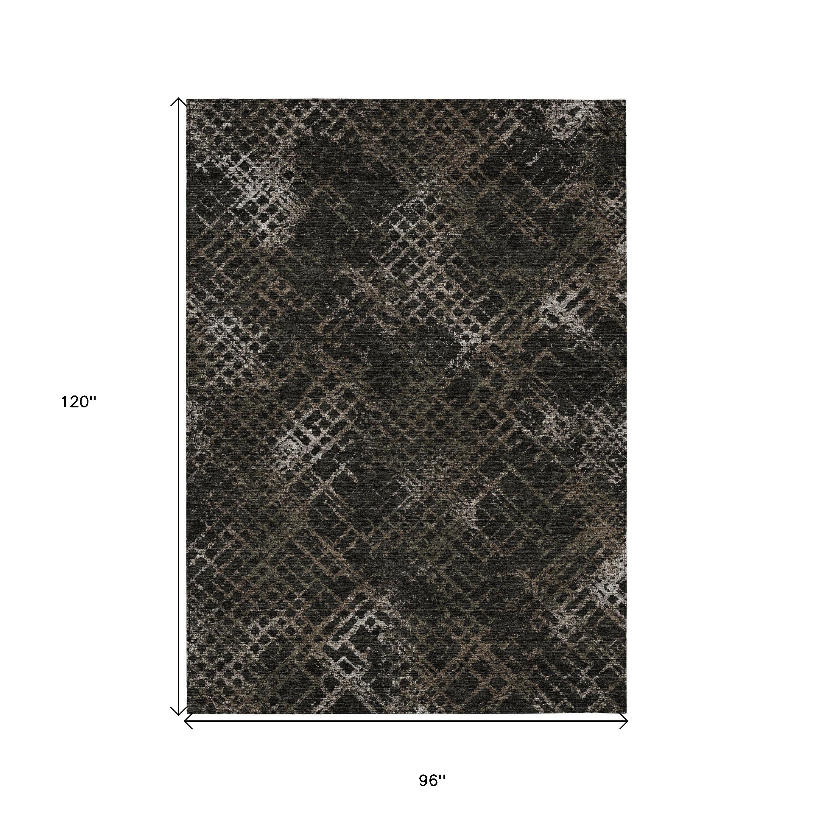 8' X 10' Brown And Chocolate Geometric Washable Indoor Outdoor Area Rug