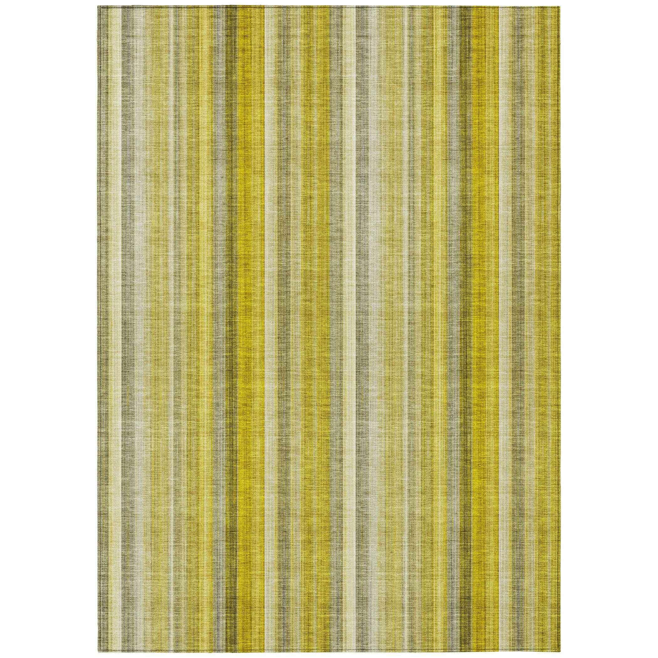 Add some artistry to your room with this 8-foot x 10-foot gold striped washable stain resistant non skid indoor outdoor area rug. This rectangle shaped rug features a striped design in gold to give it visual interest. A classic shape marries with good looking design for your space ideal for spaces with kids and pets, this rug is stain resistant to help repel stains and spilled liquids. Area rugs help to give warmth and sense of home to your space. 96-inch H x 120-inch W x 0.19-inch D