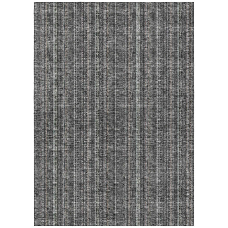 8' X 10' Gray And Silver Striped Washable Indoor Outdoor Area Rug