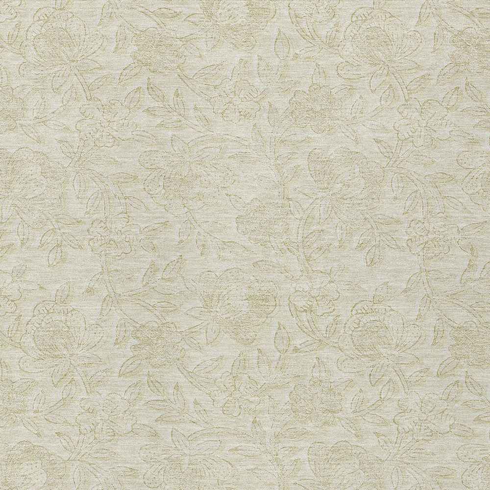 8' X 10' Ivory And Beige Floral Washable Indoor Outdoor Area Rug