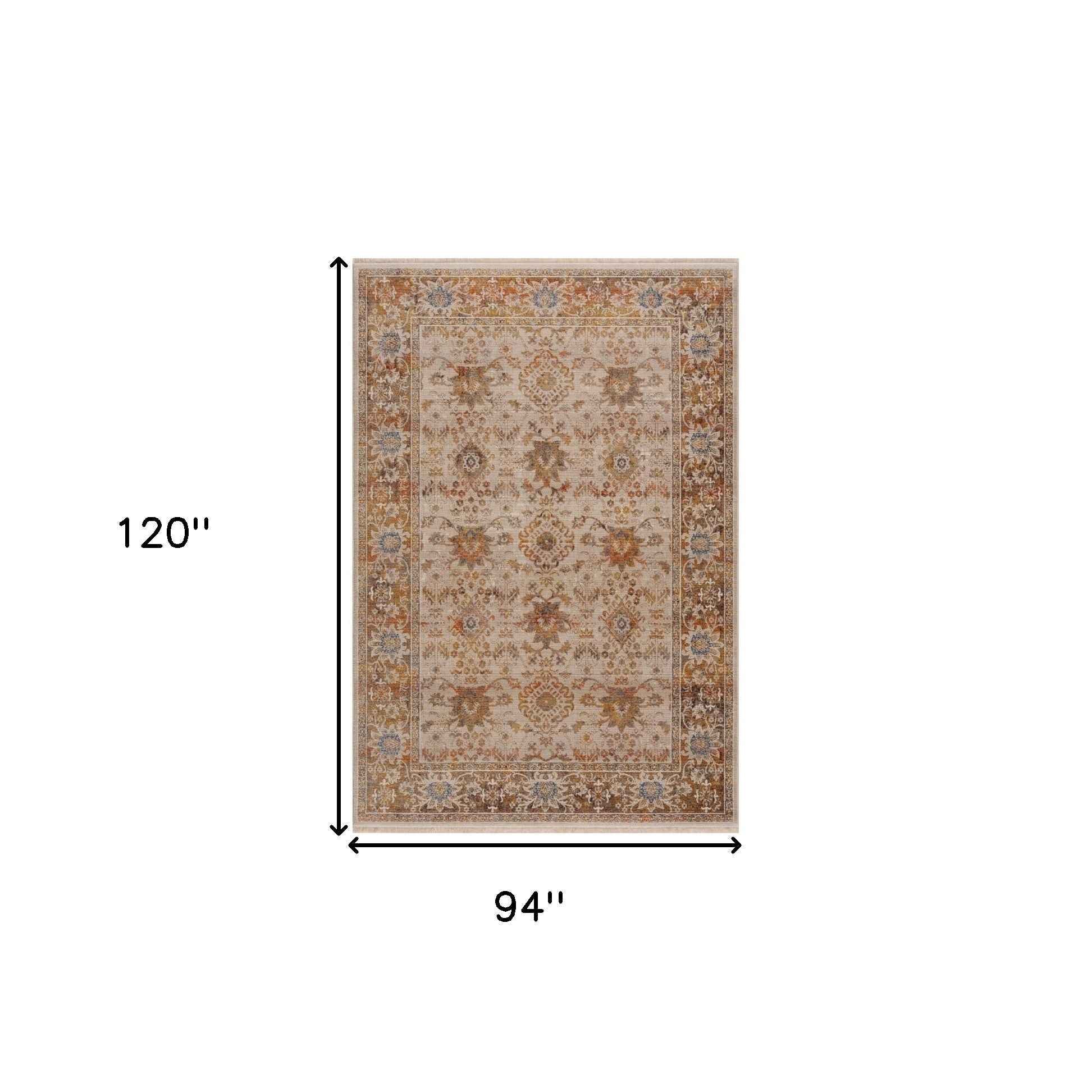 This 8' x 10' ivory oriental area rug, is a great way to add warmth to a room. This rectangle shaped rug features a oriental design in ivory to give it visual interest. A classic shape marries with good looking design for your space The coloring of this rug adds a delightfully neutral tone to your home and will easily match with most any decor. This superior Turkish rug represents the highest quality and is built to last. Area Rugs help to give warmth and sense of home to your space. 0.25" H x 94" W x 120" D