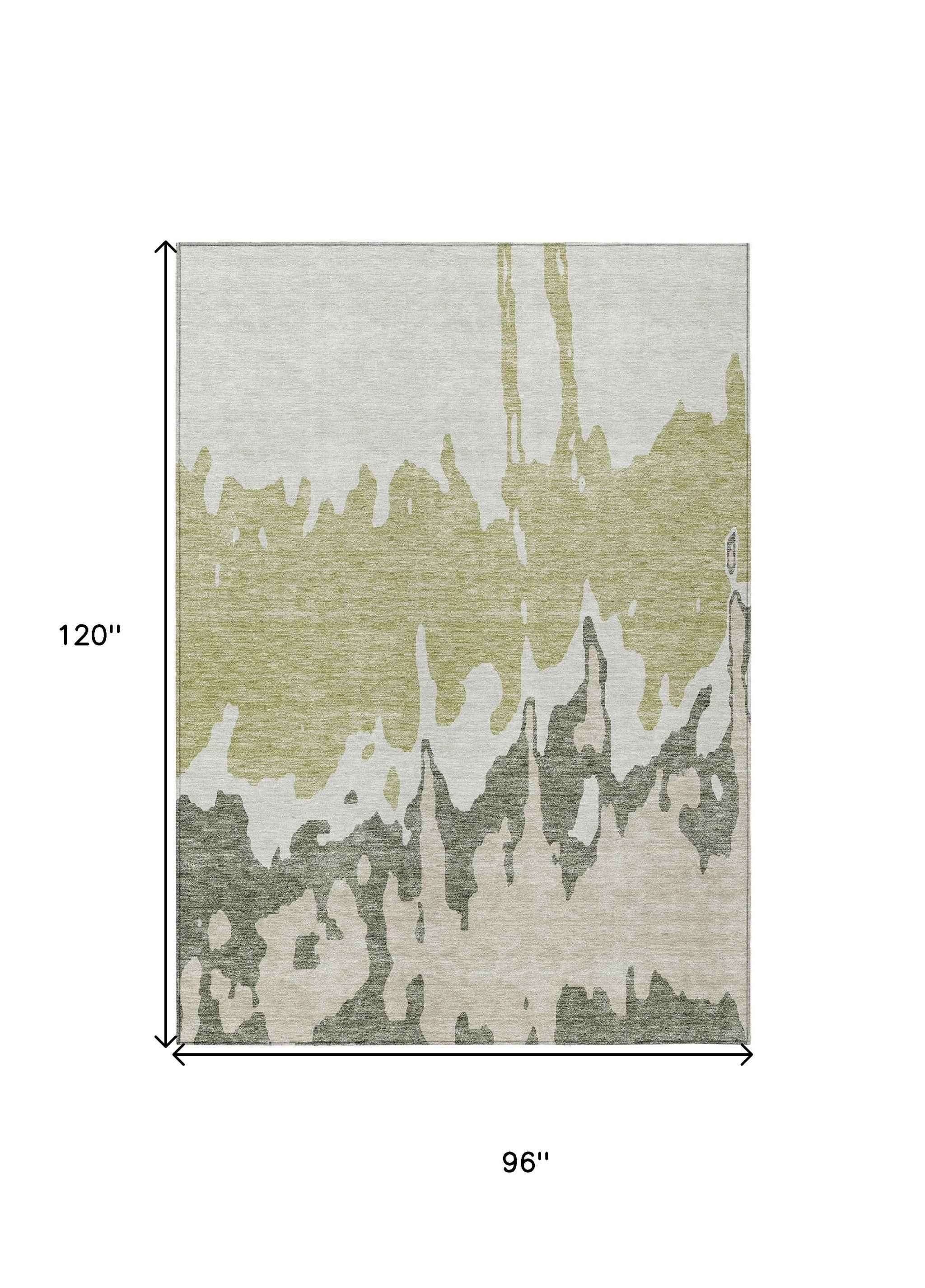 8' X 10' Sage And Ivory Abstract Washable Indoor Outdoor Area Rug