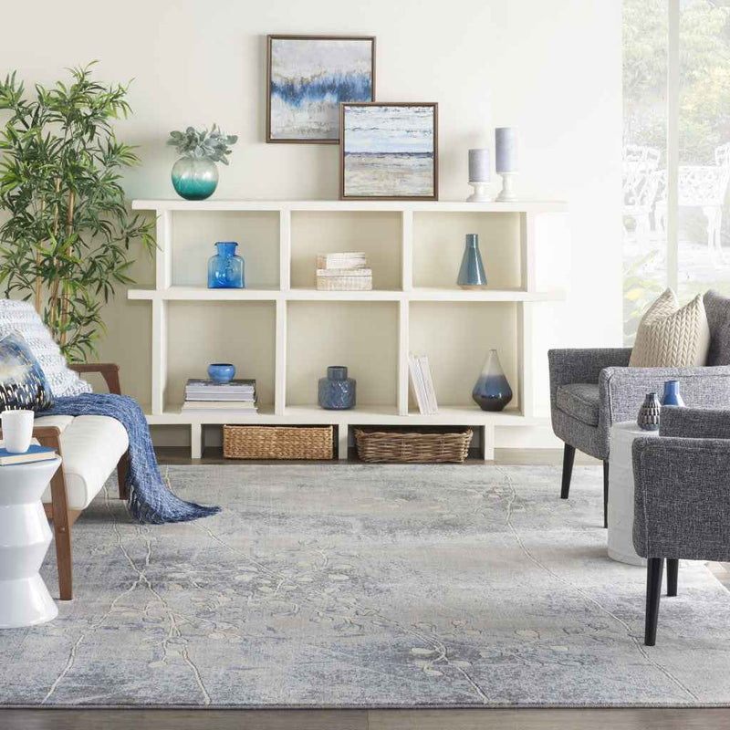 This 8' x 11' blue floral power loom area rug, is a great way to add warmth to a room. This rectangle shaped rug features a floral design in blue to give it visual interest. A classic shape marries with good looking design for your space Place this area rug against a hardwood or tile floor and it will enliven your living space with style and sophistication. .50" H x 93" W x 130" D