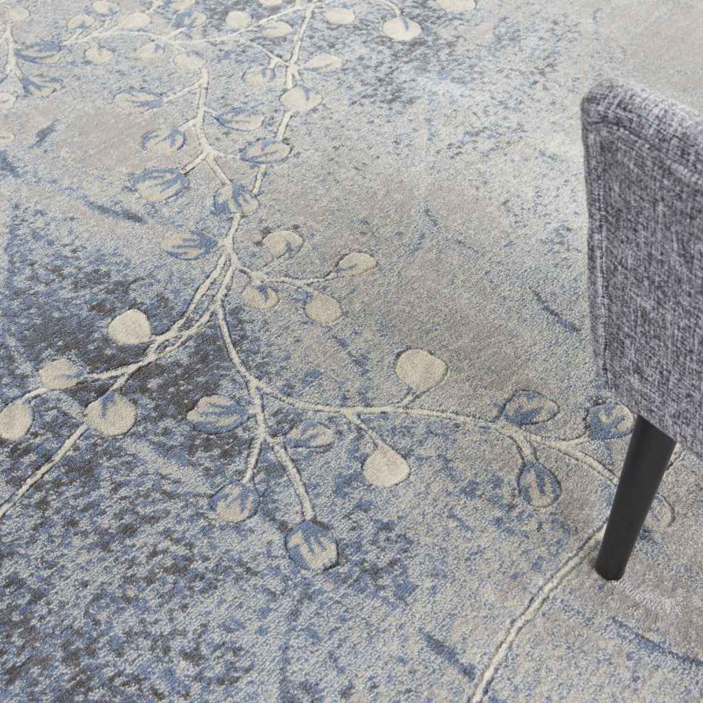 8' X 11' Blue Floral Power Loom Area Rug