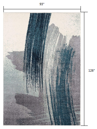 8’ X 11’ White And Blue Abstract Strokes Area Rug