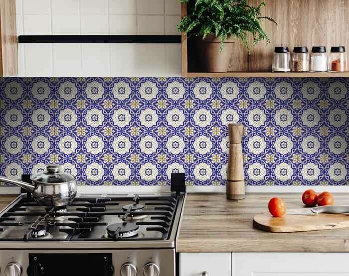 Easily add in gorgeous color and interest to your space with these 8" x 8" Blue White and Gold Mosaic Peel and Stick Removable Tile stickers. These fabulous peel and stick tiles will add lots of color, sophisticated flair, and fun design to your kitchen backsplash, fireplace mantel, stair treads, half wall, bathroom or nook. These 8" square tile stickers in multiple bright fun colors and designs are an easy, no mess solution to complete a personalized and colorful room makeover. Easy to apply on any clean dry flat surface, and easy to remove. Multi use and multi-room appeal make this design option is perfect for renters, landlords, college students and homeowners alike. Peel and stick tile decals make it easy to turn your space into a home. Removable without damage to surfaces. One kit contains 24 stickers. Kit includes a single style tile design.