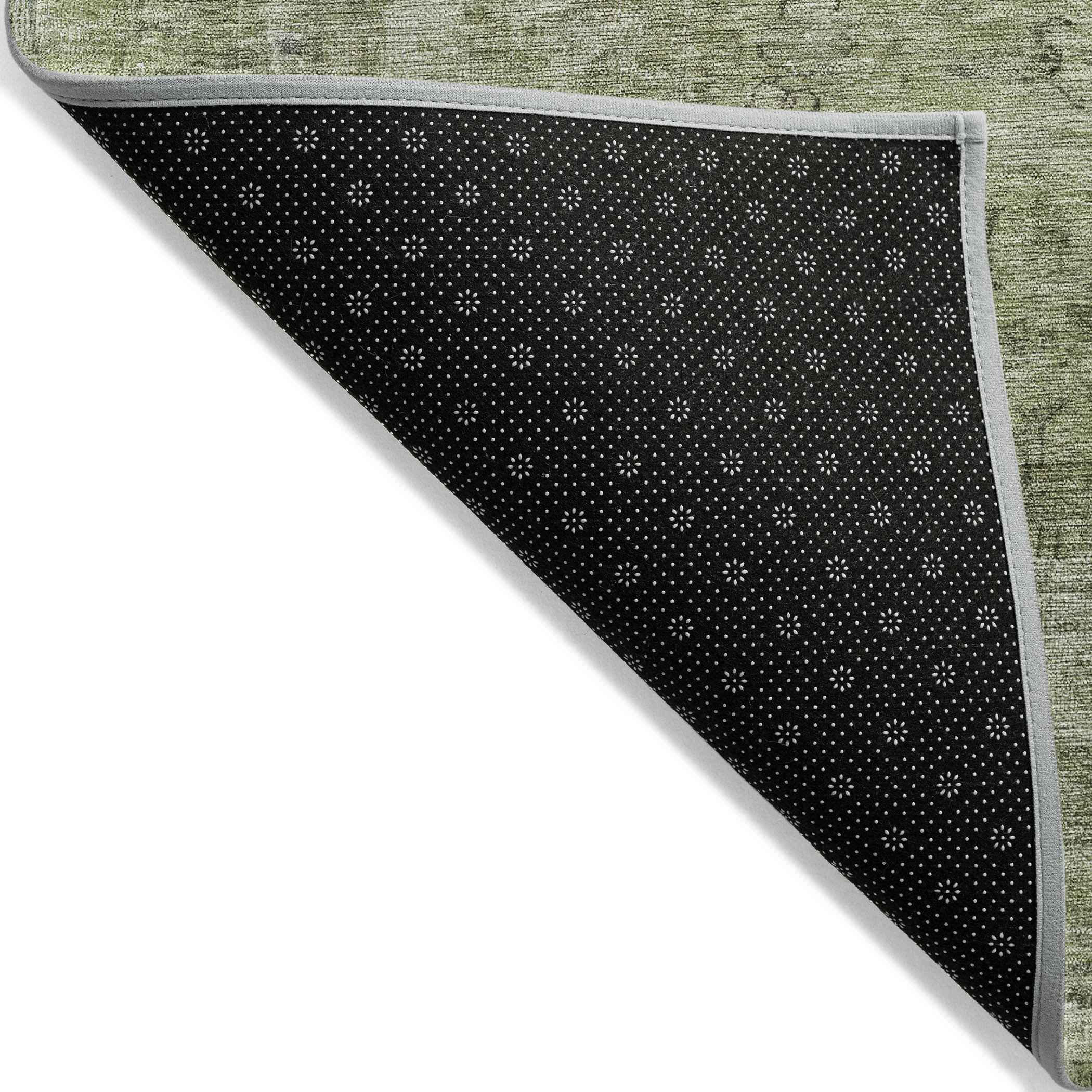 9' X 12' Artichoke Green And Beige Abstract Washable Indoor Outdoor Area Rug