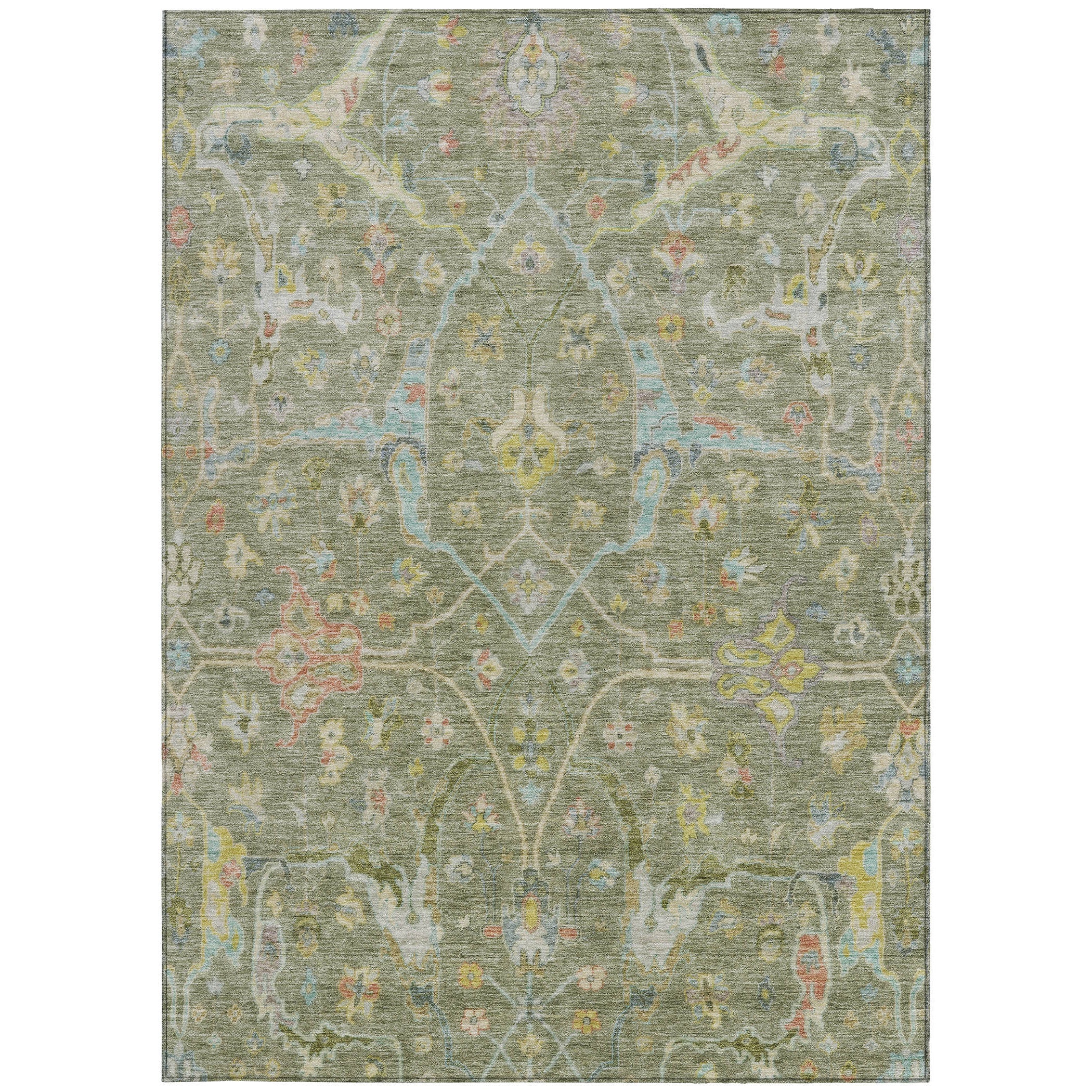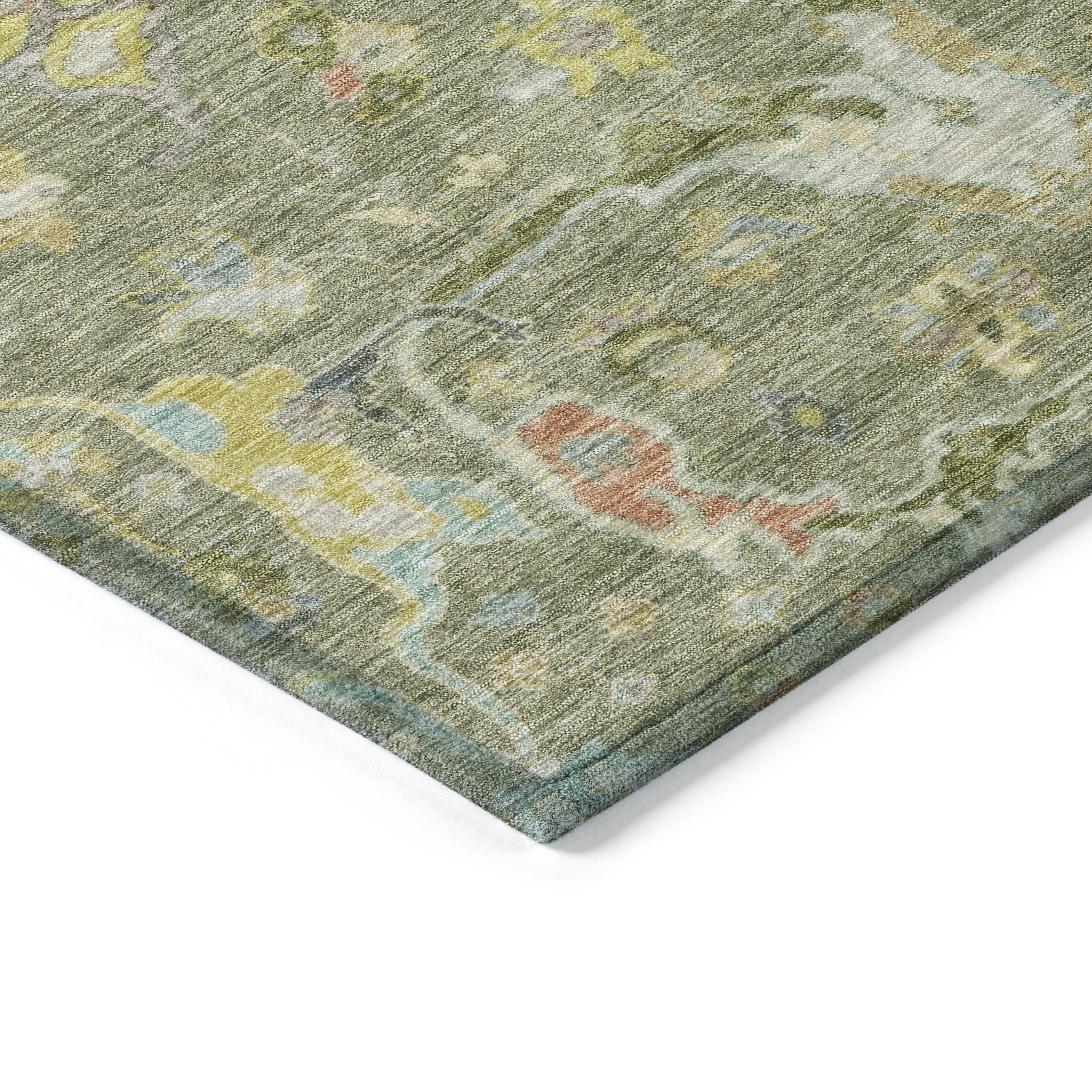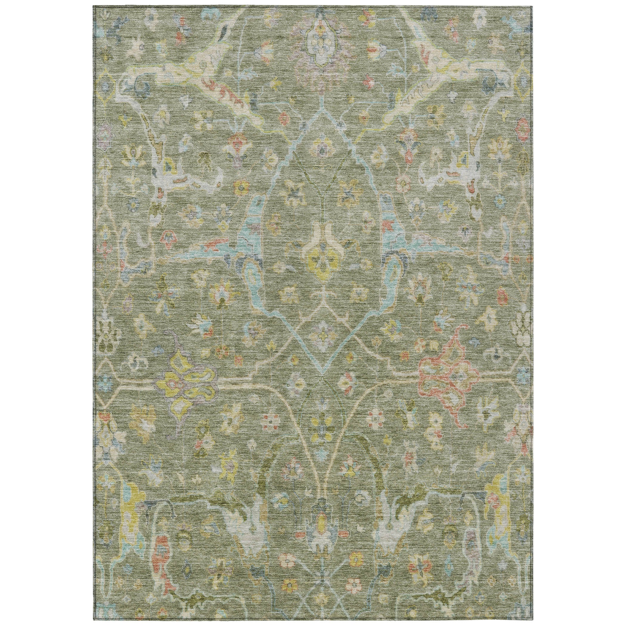 9' X 12' Artichoke Green Gold And Copper Floral Washable Indoor Outdoor Area Rug Skip to content