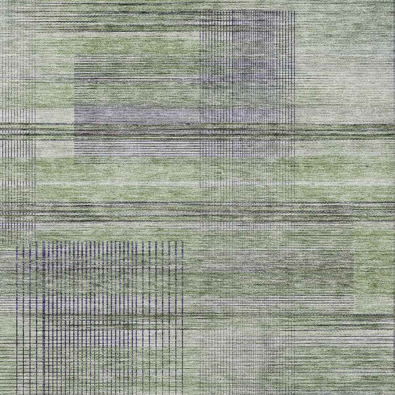 9' X 12' Artichoke Green Purple And Fern Green Striped Washable Indoor Outdoor Area Rug