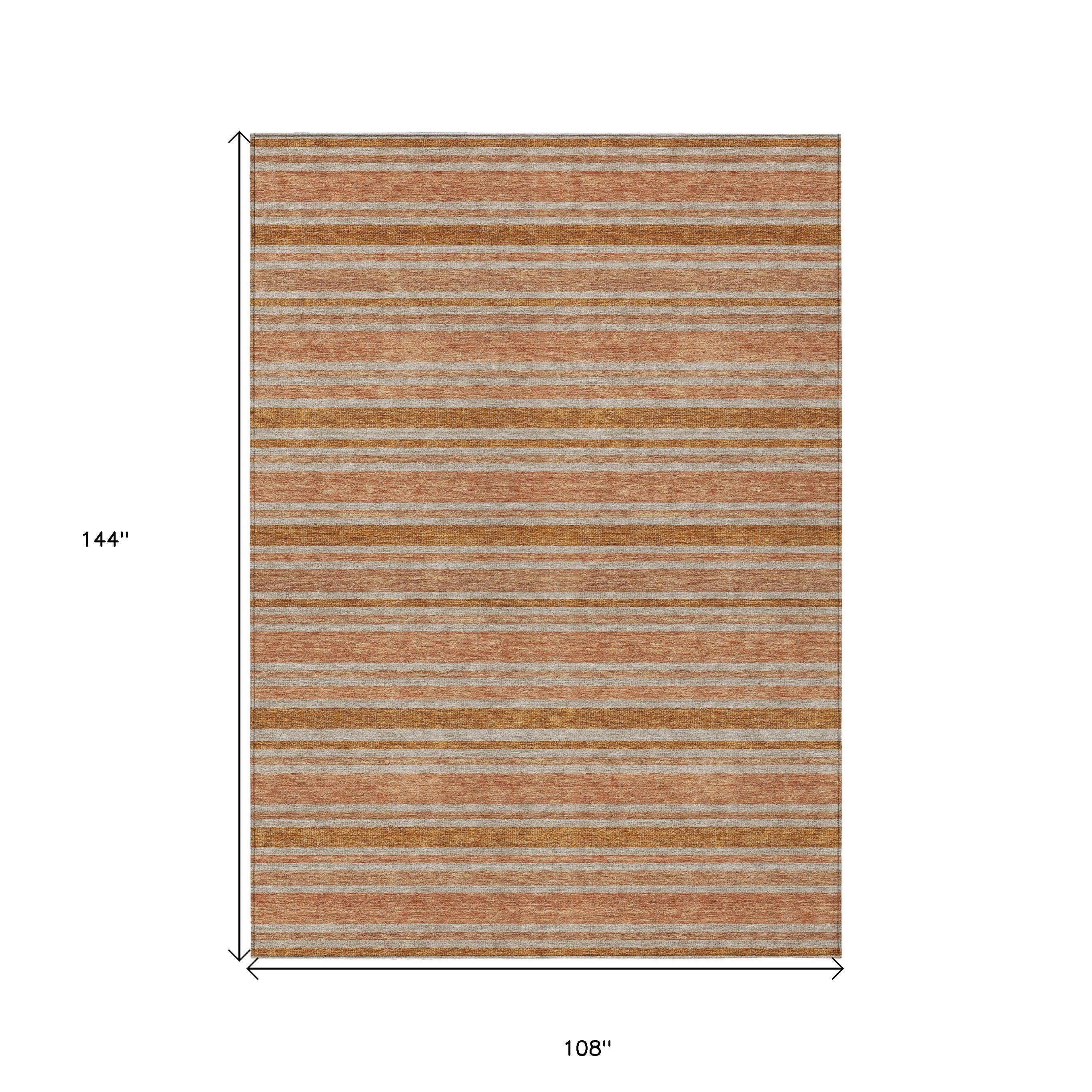 9' X 12' Beige and Orange Striped Washable Non Skid Indoor Outdoor Area Rug