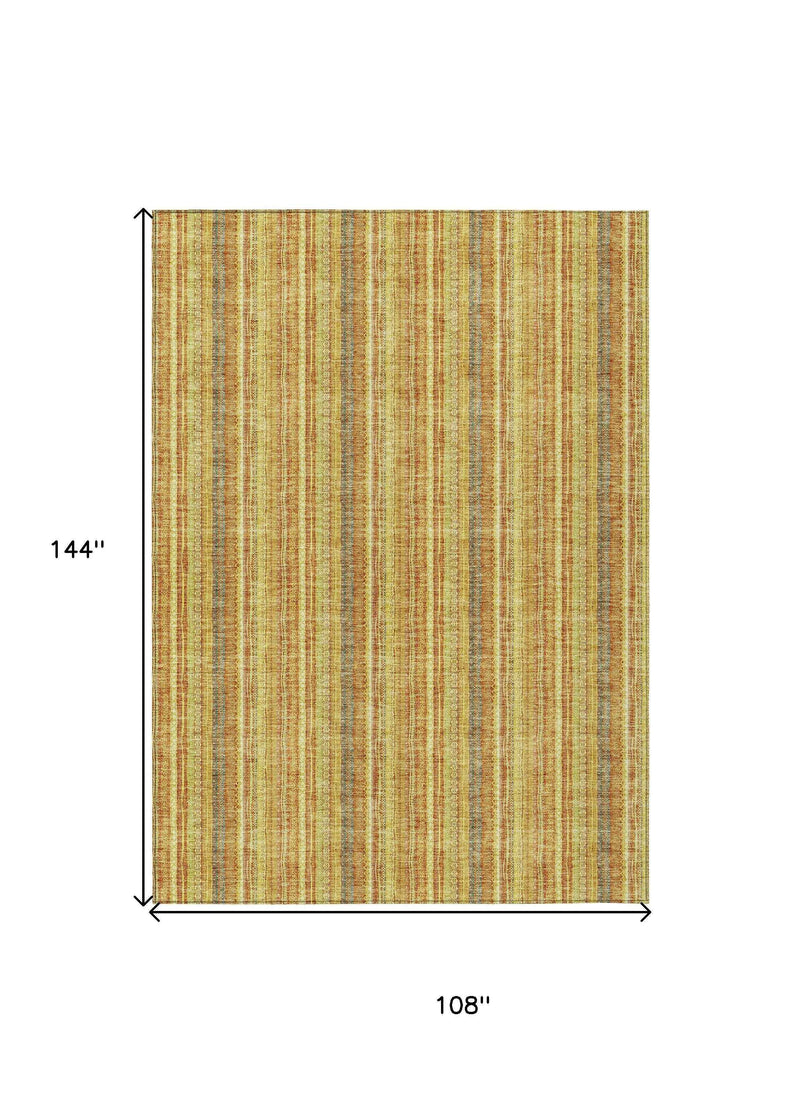 9' X 12' Gold And Copper Striped Washable Indoor Outdoor Area Rug